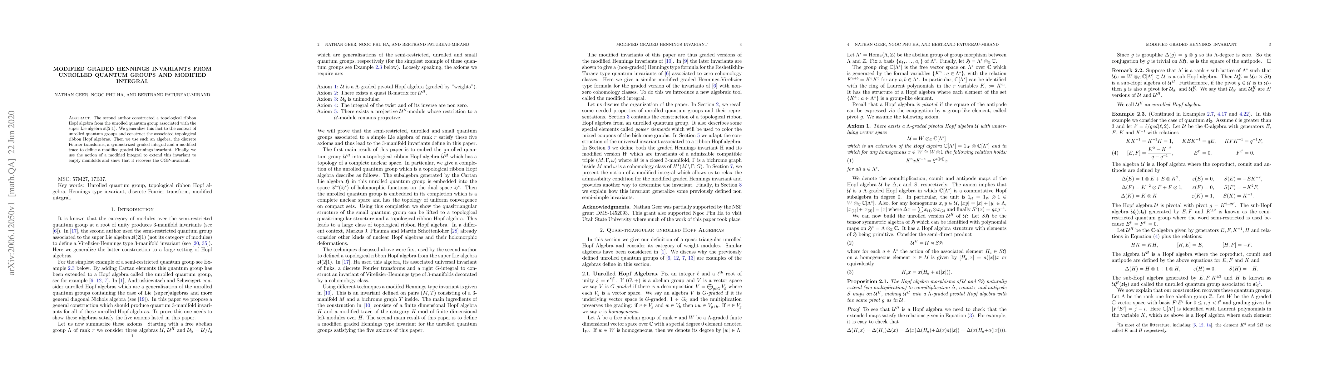 This paper generalizes the construction of topological ribbon Hopf algebras from unrolled quantum groups and uses these algebras to define a modified graded Hennings invariant, which extends to empty manifolds and recovers the CGP-invariant.