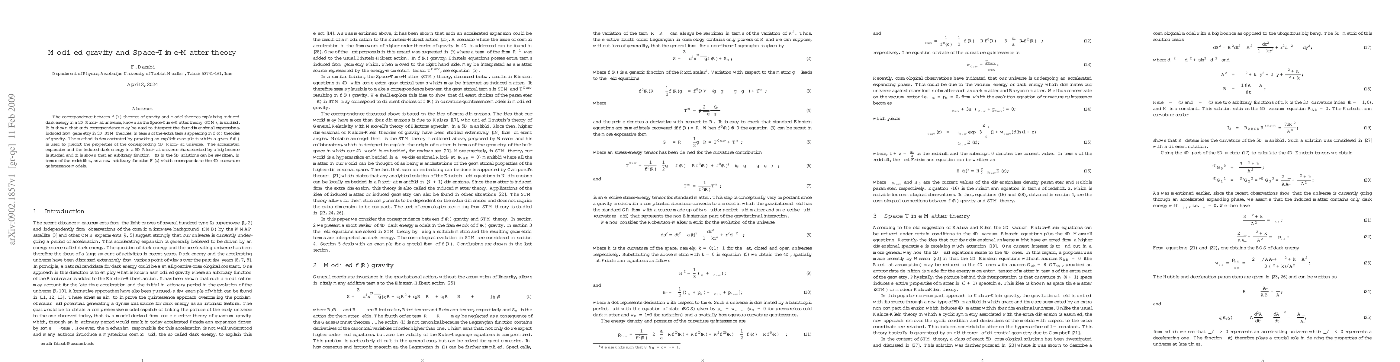 This paper explores the relationship between $f(R)$ gravity theories and the Space-Time-Matter (STM) theory, demonstrating how 5D Ricci-flat universe models can be interpreted through $f(R)$ gravity. It provides an example showing how accelerated expansion and induced dark energy in a 5D universe can be linked to 4D curvature quintessence models.