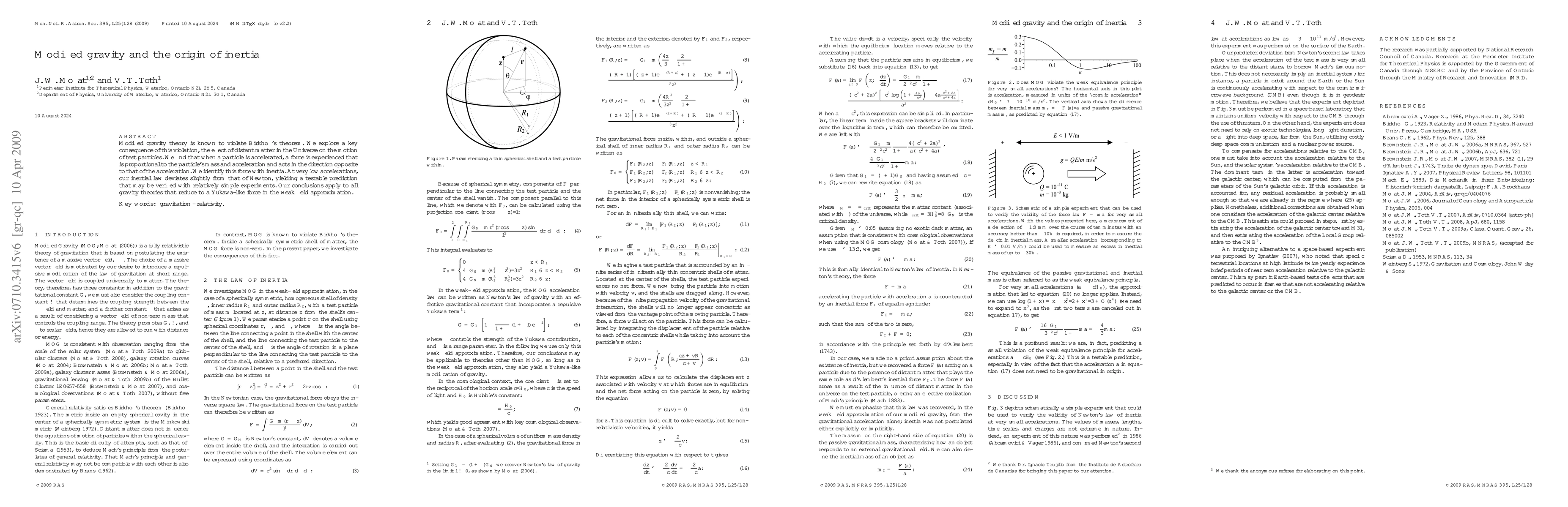 This paper explores modified gravity theories that violate Birkhoff's theorem, identifying a force proportional to mass and acceleration opposite to the acceleration direction as inertia. It proposes a testable prediction for low accelerations that slightly deviates from Newton's law, applicable to theories with Yukawa-like forces.