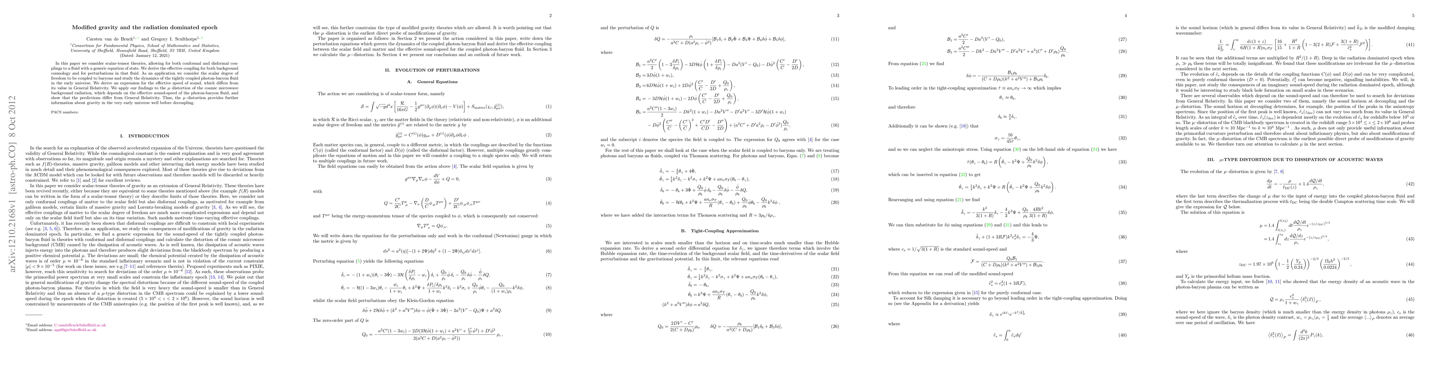In this paper we consider scalar-tensor theories, allowing for both conformal and disformal couplings to a fluid with a generic equation of state. We derive the effective coupling for both background cosmology and for perturbations in that fluid. As an application we consider the scalar degree of freedom to be coupled to baryons and study the dynamics of the tightly coupled photon-baryon fluid in the early universe. We derive an expression for the effective speed of sound, which differs from its value in General Relativity. We apply our findings to the \mu-distortion of the cosmic microwave background radiation, which depends on the effective sound-speed of the photon-baryon fluid, and show that the predictions differ from General Relativity. Thus, the \mu-distortion provides further information about gravity in the very early universe well before decoupling.