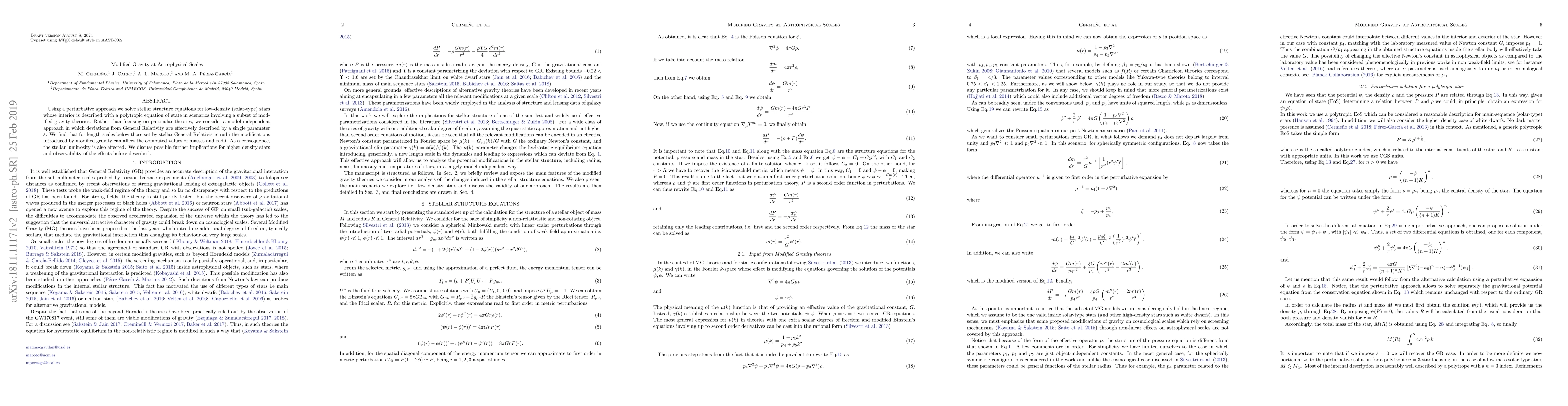 Modified gravity theories affect stellar masses, radii, and luminosity at small scales, with a single parameter describing deviations from General Relativity.
