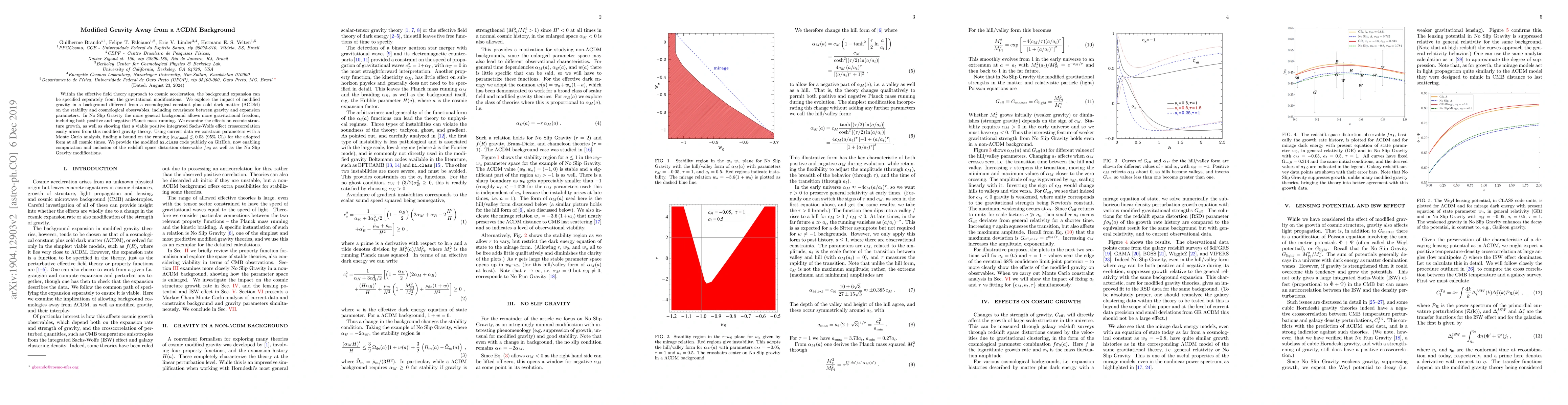 Within the effective field theory approach to cosmic acceleration, the background expansion can be specified separately from the gravitational modifications. We explore the impact of modified gravity in a background different from a cosmological constant plus cold dark matter ($\Lambda$CDM) on the stability and cosmological observables, including covariance between gravity and expansion parameters. In No Slip Gravity the more general background allows more gravitational freedom, including both positive and negative Planck mass running. We examine the effects on cosmic structure growth, as well as showing that a viable positive integrated Sachs-Wolfe effect crosscorrelation easily arises from this modified gravity theory. Using current data we constrain parameters with a Monte Carlo analysis, finding a maximum running $|\alpha_M|\lesssim 0.03$. We provide the modified {\tt hi\_class} code publicly on GitHub, now enabling computation and inclusion of the redshift space distortion observable $f\sigma_8$ as well as the No Slip Gravity modifications.
