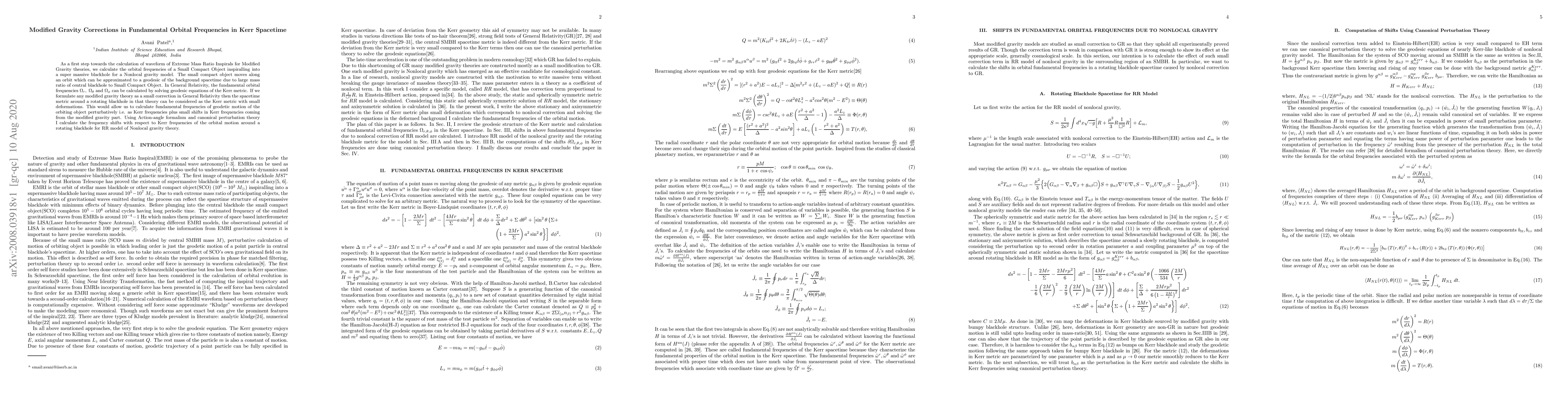 As a first step towards the calculation of waveform of Extreme Mass Ratio Inspirals for Modified Gravity theories, we calculate the orbital frequencies of a Small Compact Object inspiralling into a super massive blackhole for a Nonlocal gravity model. The small compact object moves along an orbit which can be approximated to a geodesic of the background spacetime due to large mass ratio of central blackhole to Small Compact Object. In General Relativity, the fundamental orbital frequencies $\Omega_r,\;\Omega_{\theta}$ and $\Omega_{\phi}$ can be calculated by solving geodesic equations of the Kerr metric. If we formulate any modified gravity theory as a small correction in General Relativity then the spacetime metric around a rotating blackhole in that theory can be considered as the Kerr metric with small deformations. This would allow us to calculate fundamental frequencies of geodetic motion of the orbiting object perturbatively i.e. as Kerr frequencies plus small shifts in Kerr frequencies coming from the modified gravity part. Using Action-angle formalism and canonical perturbation theory I calculate the frequency shifts with respect to Kerr frequencies of the orbital motion around a rotating blackhole for RR model of Nonlocal gravity theory.