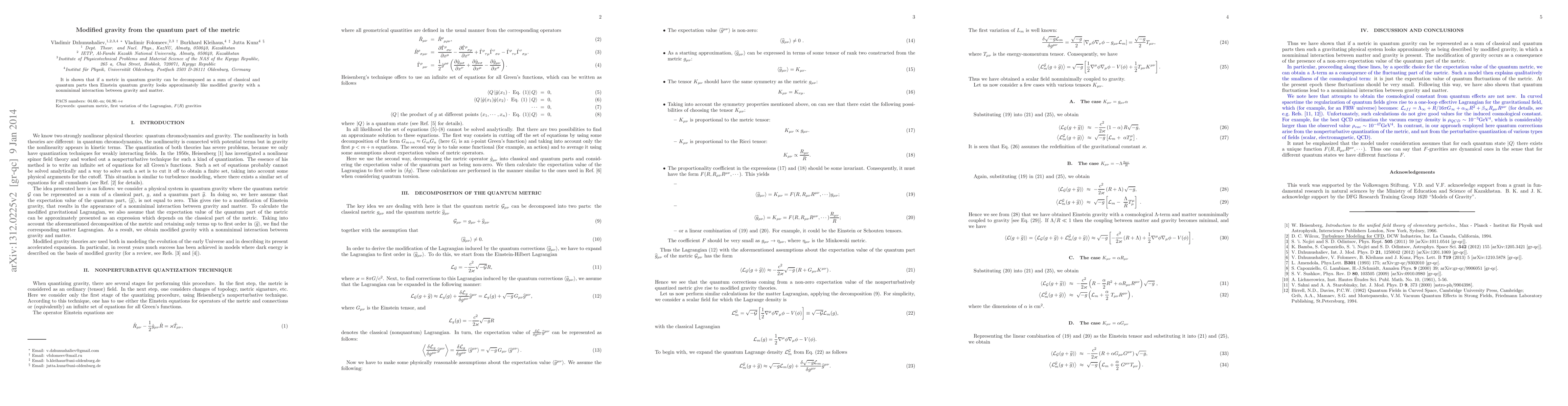 It is shown that if a metric in quantum gravity can be decomposed as a sum of classical and quantum parts then Einstein quantum gravity looks approximately like modified gravity with a nonminimal interaction between gravity and matter.
