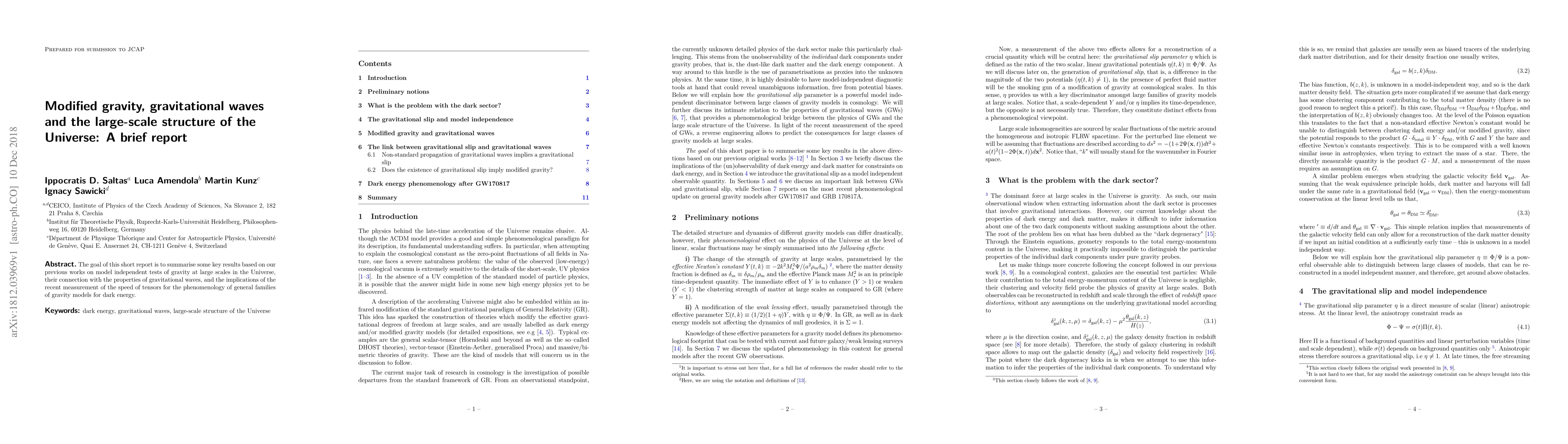 Researchers explored connections between modified gravity models, gravitational waves, and dark energy, finding potential implications for understanding the universe's large-scale structure. They also analyzed recent speed of tensor measurements to inform general gravity model phenomenology.