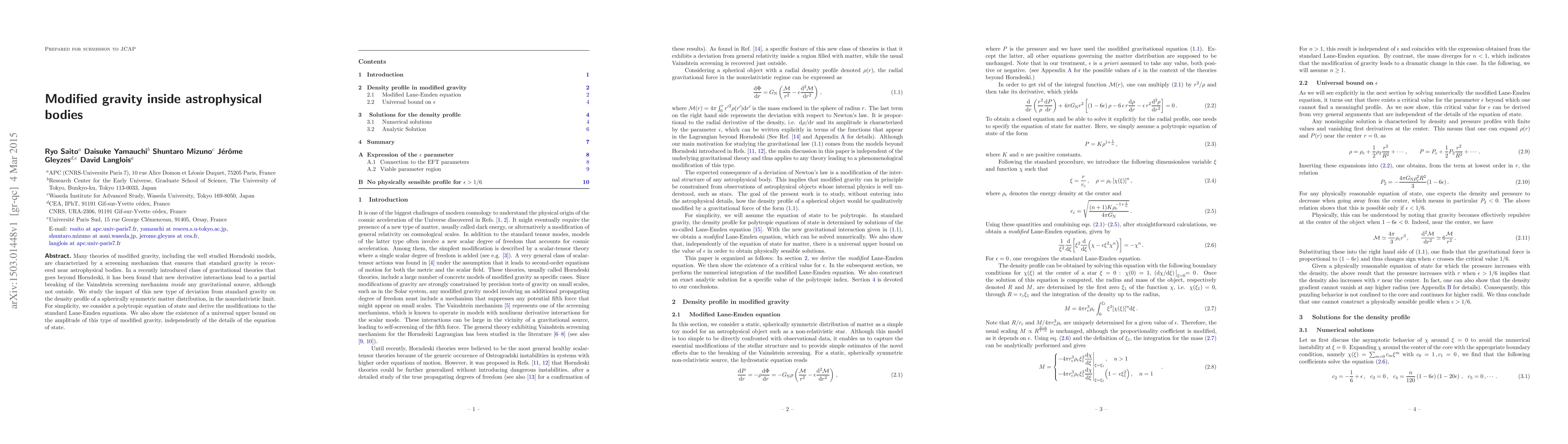 A new type of modified gravity theory deviates from Vainshtein screening, altering density profiles within astrophysical bodies. A universal upper bound exists for the amplitude of these modifications.