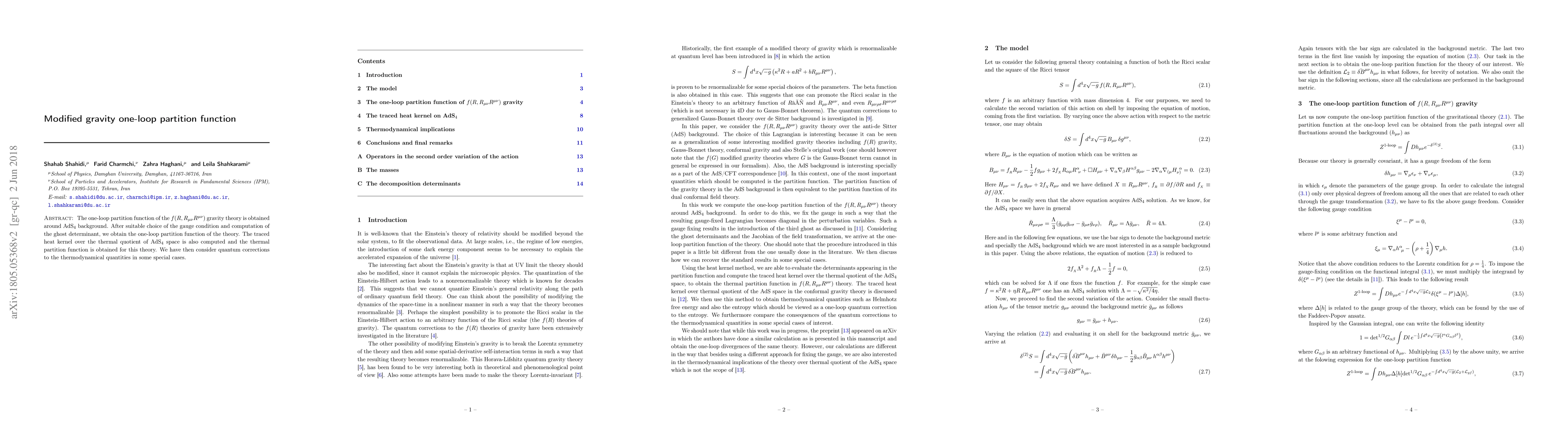 The paper presents a detailed computation of the one-loop partition function for a modified gravity theory using established quantum field theory techniques, specifically tailored for constant curvature backgrounds like AdS$_4$.