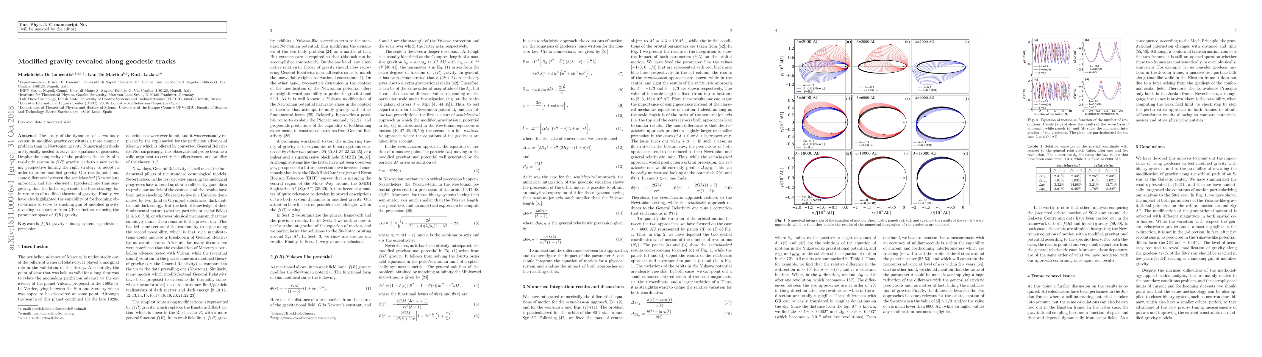The study of the dynamics of a two-body system in modified gravity constitutes a more complex problem than in Newtonian gravity. Numerical methods are typically needed to solve the equations of geodesics. Despite the complexity of the problem, the study of a two-body system in $f(R)$ gravity leads to a new exciting perspective hinting the right strategy to adopt in order to probe modified gravity. Our results point out some differences between the {\em semiclassical} (Newtonian) approach, and the {\em relativistic} (geodesic) one thus suggesting that the latter represents the best strategy for future tests of modified theories of gravity. { Finally, we have also highlighted the capability of forthcoming observations to serve as smoking gun of modified gravity revealing a departure from GR or further reducing the parameter space of $f(R)$ gravity}. \keywords{$f(R)$ gravity \and binary system \and geodesics \and precession