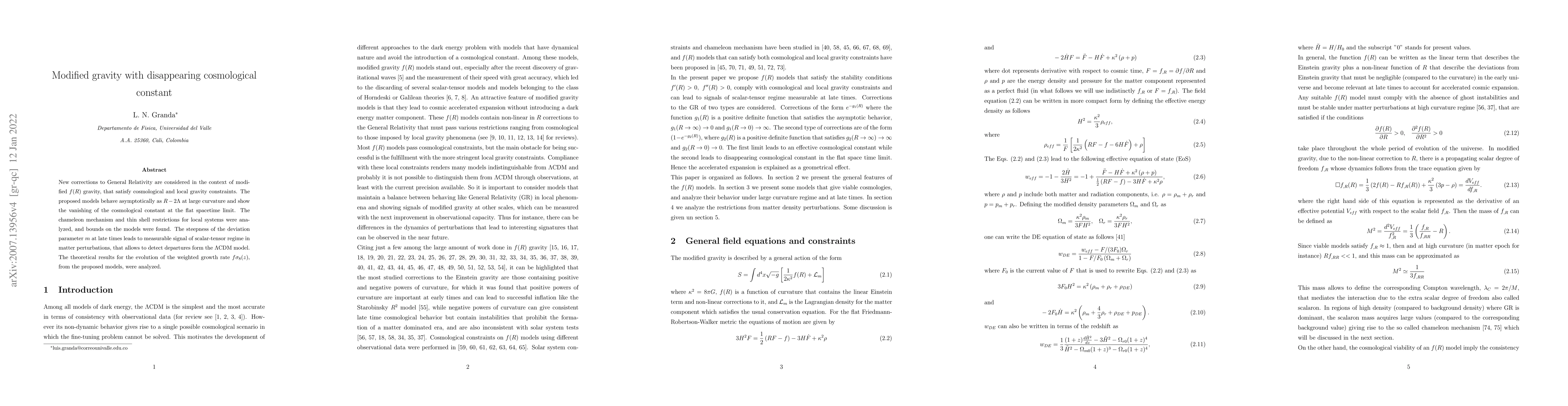 New corrections to General Relativity are considered in the context of modified $f(R)$ gravity, that satisfy cosmological and local gravity constraints. The proposed models behave asymptotically as $R-2\Lambda$ at large curvature and show the vanishing of the cosmological constant at the flat spacetime limit. The chameleon mechanism and thin shell restrictions for local systems were analyzed, and bounds on the models were found. The steepness of the deviation parameter $m$ at late times leads to measurable signal of scalar-tensor regime in matter perturbations, that allows to detect departures form the $\Lambda$CDM model. The theoretical results for the evolution of the weighted growth rate $f\sigma_8(z)$, from the proposed models, were analyzed.