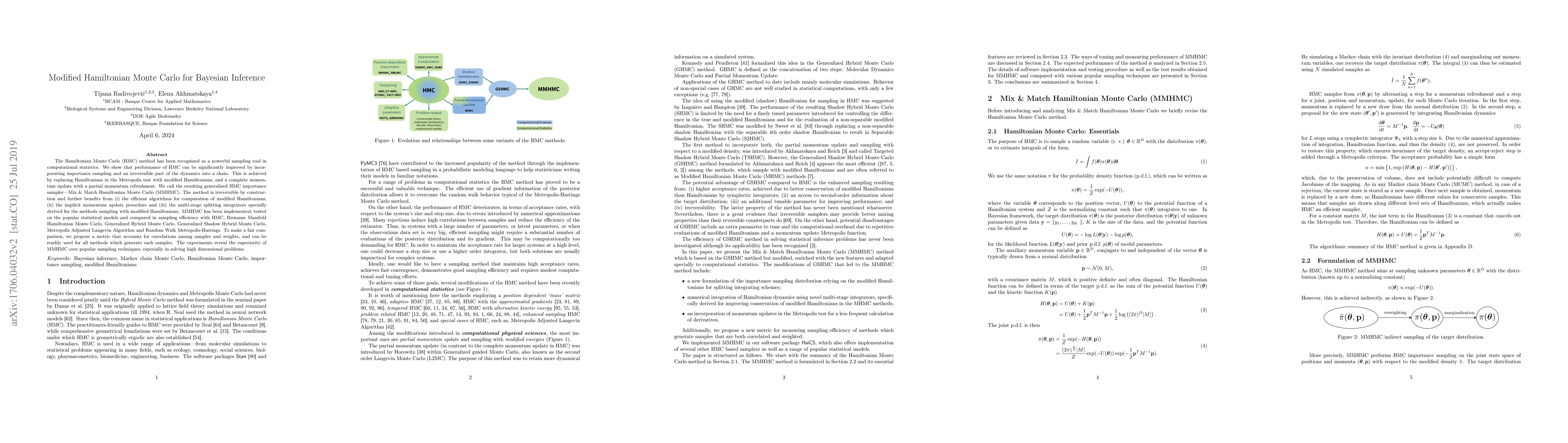 The Hamiltonian Monte Carlo (HMC) method has been recognized as a powerful sampling tool in computational statistics. We show that performance of HMC can be significantly improved by incorporating importance sampling and an irreversible part of the dynamics into a chain. This is achieved by replacing Hamiltonians in the Metropolis test with modified Hamiltonians, and a complete momentum update with a partial momentum refreshment. We call the resulting generalized HMC importance sampler---Mix & Match Hamiltonian Monte Carlo (MMHMC). The method is irreversible by construction and further benefits from (i) the efficient algorithms for computation of modified Hamiltonians; (ii) the implicit momentum update procedure and (iii) the multi-stage splitting integrators specially derived for the methods sampling with modified Hamiltonians. MMHMC has been implemented, tested on the popular statistical models and compared in sampling efficiency with HMC, Riemann Manifold Hamiltonian Monte Carlo, Generalized Hybrid Monte Carlo, Generalized Shadow Hybrid Monte Carlo, Metropolis Adjusted Langevin Algorithm and Random Walk Metropolis-Hastings. To make a fair comparison, we propose a metric that accounts for correlations among samples and weights, and can be readily used for all methods which generate such samples. The experiments reveal the superiority of MMHMC over popular sampling techniques, especially in solving high dimensional problems.