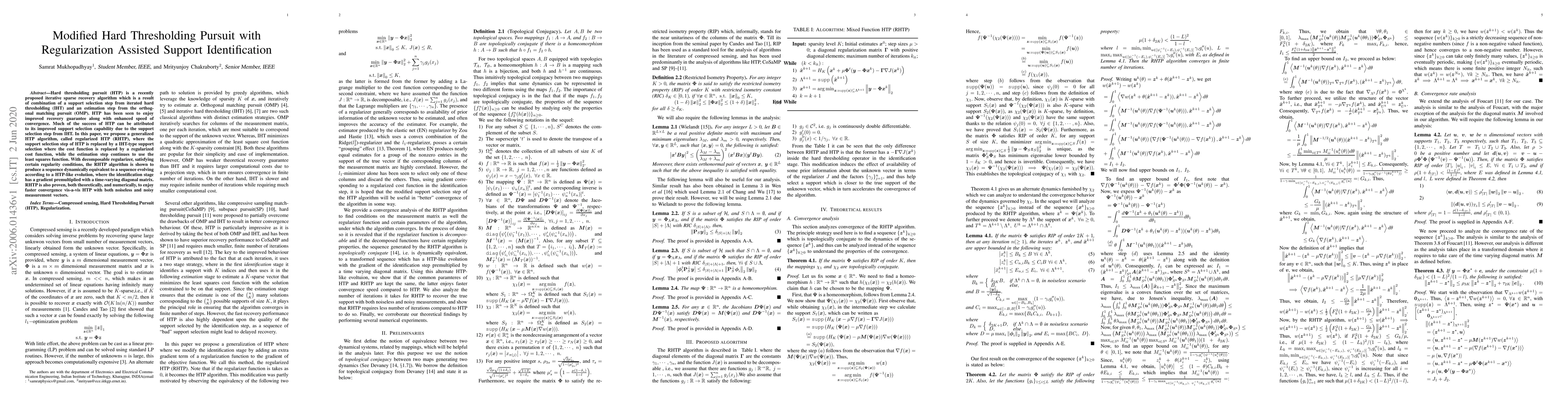 This paper proposes a modified hard thresholding pursuit (RHTP) algorithm that replaces the support selection step with a regularized cost function, while maintaining the estimation step of least squares. RHTP is shown to converge faster than the original HTP algorithm, both theoretically and numerically.