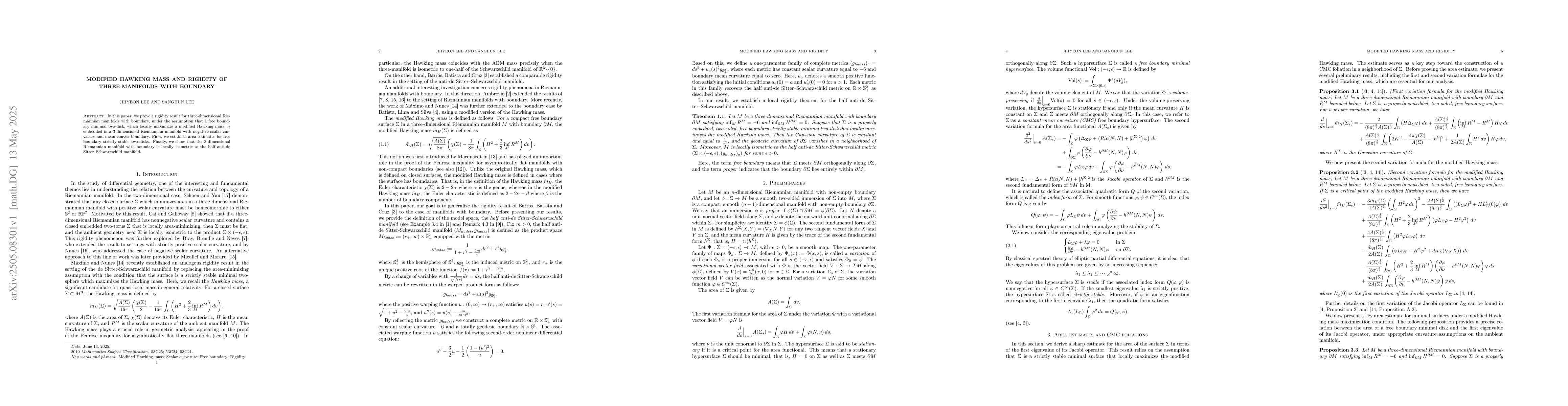 The novelty lies in linking a modified Hawking mass to rigidity properties of three-dimensional Riemannian manifolds with boundary, extending prior work in the field.