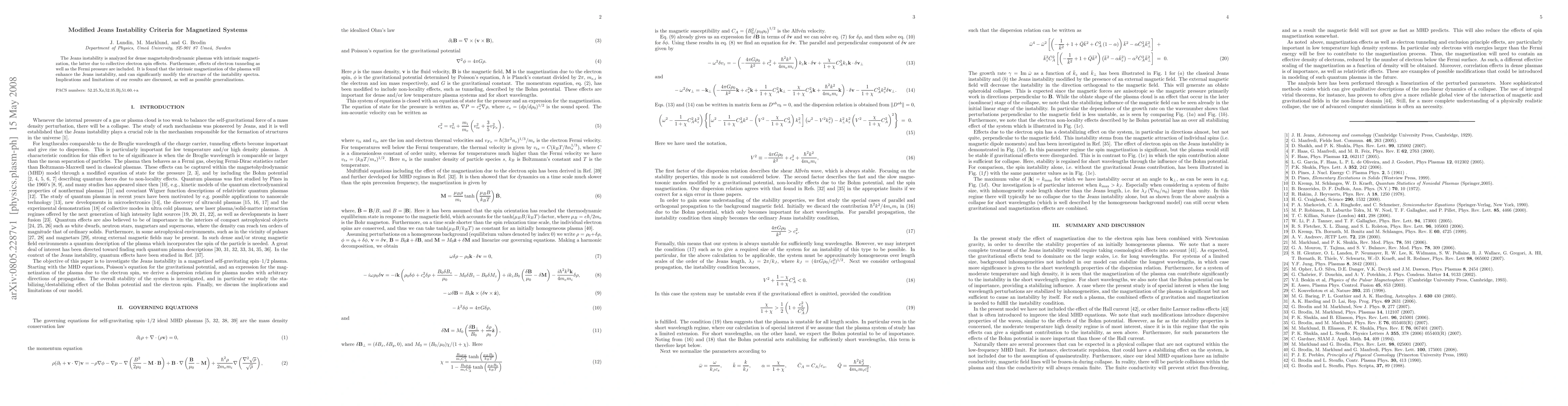 This study analyzes the Jeans instability in magnetized plasmas with intrinsic magnetization, finding it enhances the instability and modifies its structure. The results have implications for understanding dense plasma behavior.