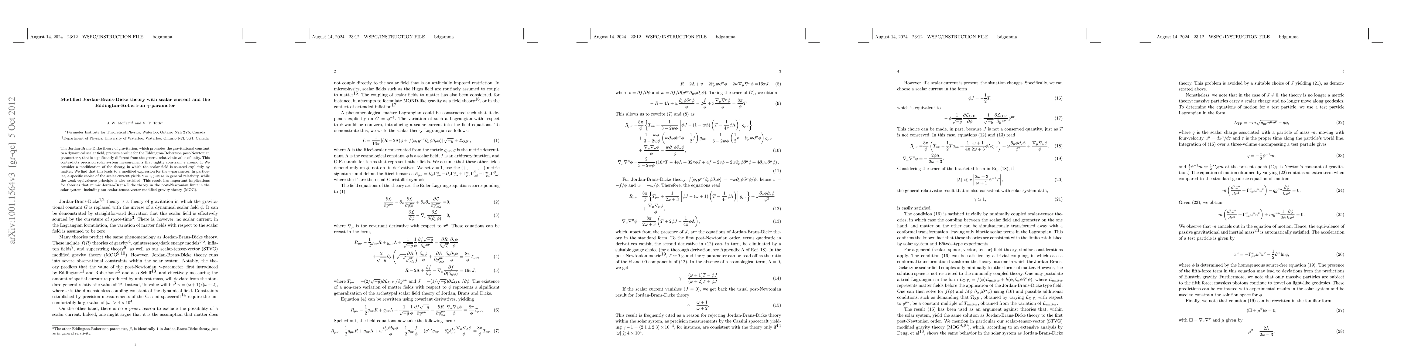 This paper explores a modified version of the Jordan-Brans-Dicke theory where the scalar field is explicitly sourced by matter, resulting in a gamma-parameter equal to 1, consistent with general relativity and the weak equivalence principle, addressing discrepancies with solar system measurements.