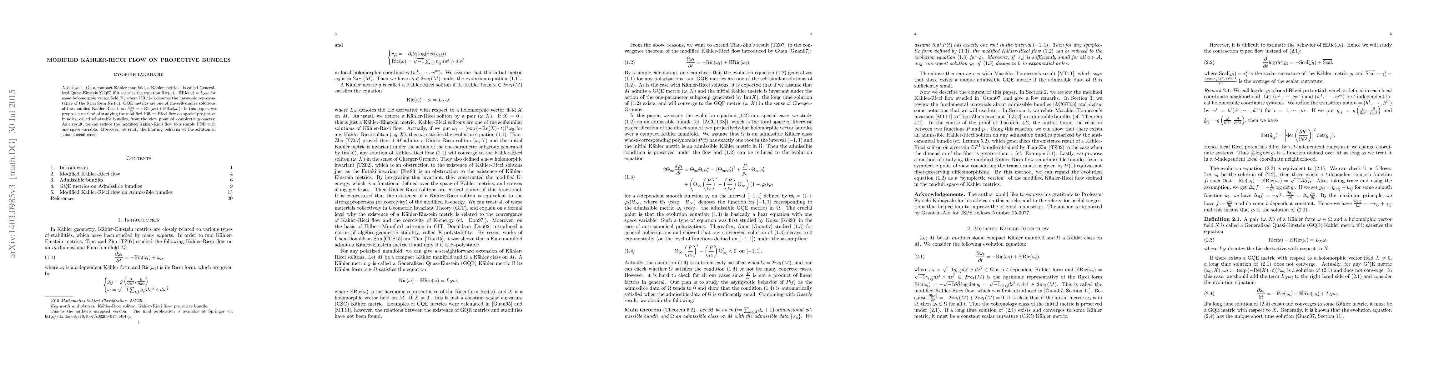 Summary: This paper introduces a method to analyze the modified Kähler-Ricci flow on projective bundles, providing an explicit equation derived from the perspective of symplectic geometry. The approach aims to enhance understanding of the flow's behavior in complex projective settings.