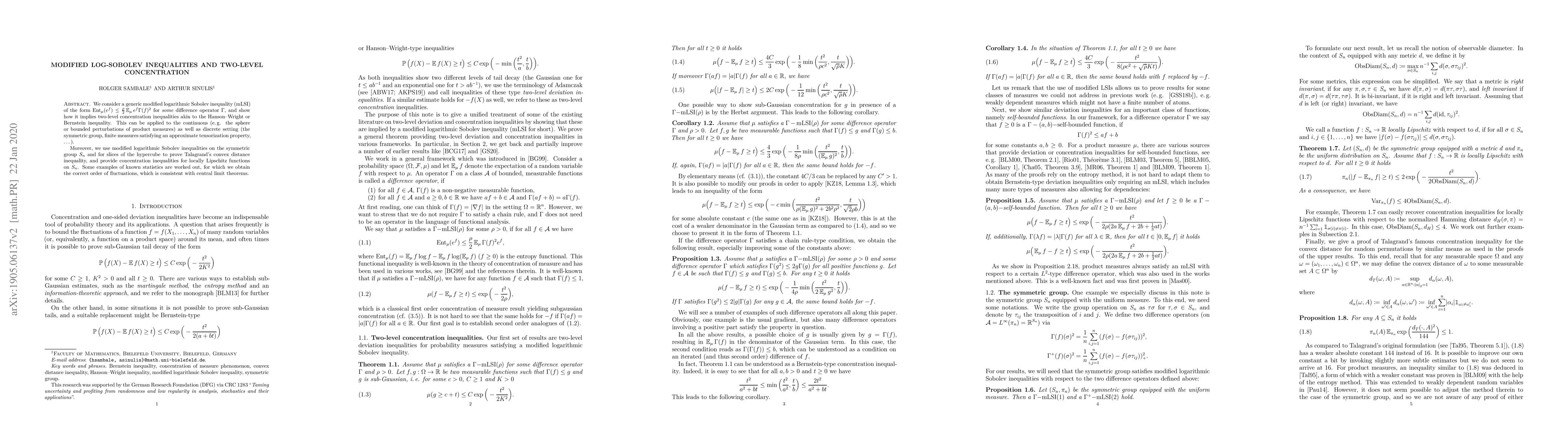 This paper explores modified logarithmic Sobolev inequalities to derive two-level concentration inequalities, applicable in both continuous and discrete settings. It also proves Talagrand's convex distance inequality and provides concentration inequalities for locally Lipschitz functions on the symmetric group, consistent with central limit theorems.