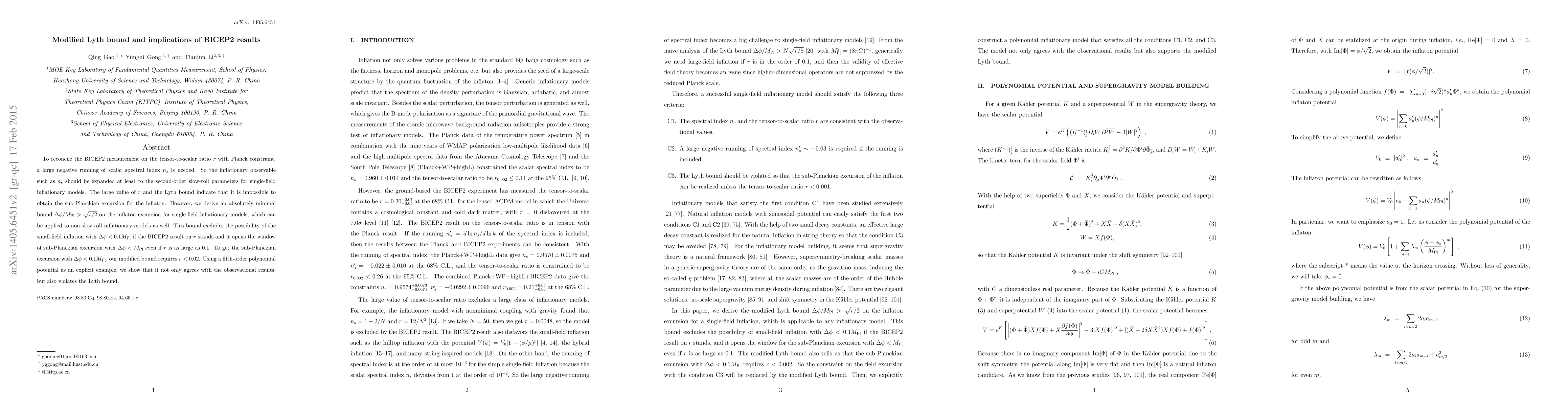 The research modifies the Lyth bound to reconcile BICEP2 results with Planck constraints by considering second-order slow-roll parameters and deriving an absolutely minimal bound on inflaton excursion Δφ/M_Pl > √(r/2) applicable to single-field and non-slow-roll inflationary models.