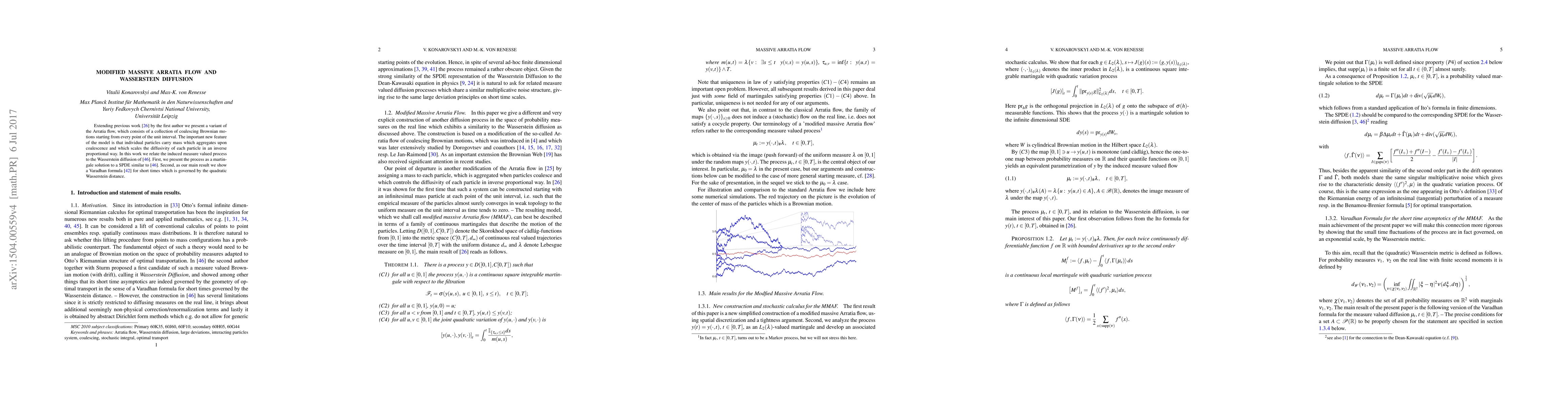 This paper introduces a new model of coalescing Brownian motions with mass that aggregates upon collision, relating it to the Wasserstein diffusion process. It derives a Varadhan formula for short times governed by the quadratic Wasserstein distance.