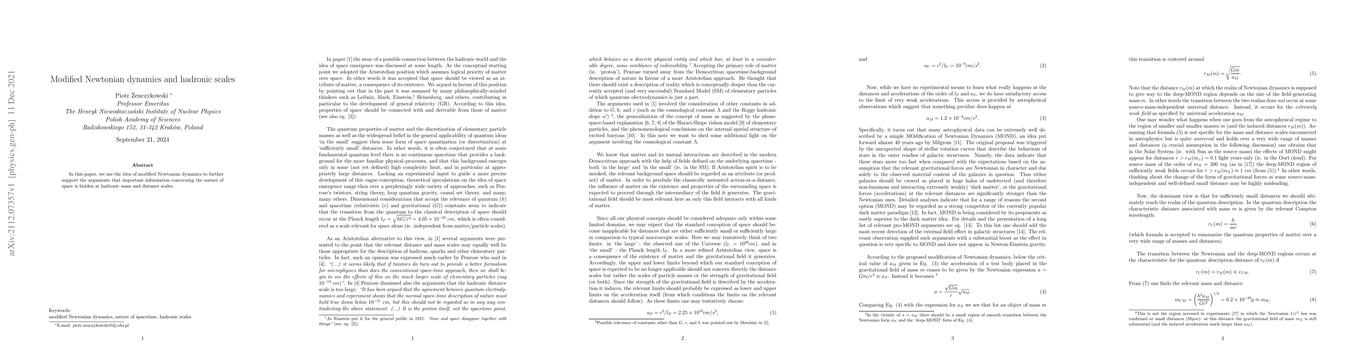 In this paper, we use the idea of modified Newtonian dynamics to further support the arguments that important information concerning the nature of space is hidden at hadronic mass and distance scales.