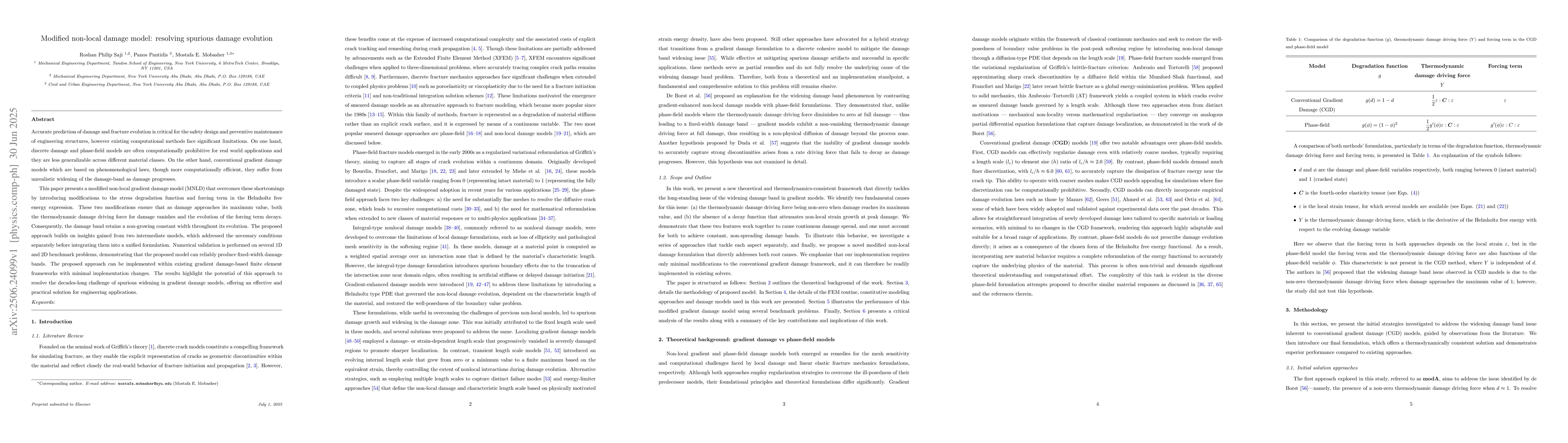 Accurate prediction of damage and fracture evolution is critical for the safety design and preventive maintenance of engineering structures, however existing computational methods face significant limitations. On one hand, discrete damage and phase-field models are often computationally prohibitive for real world applications and they are less generalizable across different material classes. On the other hand, conventional gradient damage models which are based on phenomenological laws, though more computationally efficient, they suffer from unrealistic widening of the damage-band as damage progresses. This paper presents a modified non-local gradient damage model (MNLD) that overcomes these shortcomings by introducing modifications to the stress degradation function and forcing term in the Helmholtz free energy expression. These two modifications ensure that as damage approaches its maximum value, both the thermodynamic damage driving force for damage vanishes and the evolution of the forcing term decays. Consequently, the damage band retains a non-growing constant width throughout its evolution. The proposed approach builds on insights gained from two intermediate models, which addressed the necessary conditions separately before integrating them into a unified formulation. Numerical validation is performed on several 1D and 2D benchmark problems, demonstrating that the proposed model can reliably produce fixed-width damage bands. The proposed approach can be implemented within existing gradient damage-based finite element frameworks with minimal implementation changes. The results highlight the potential of this approach to resolve the decades-long challenge of spurious widening in gradient damage models, offering an effective and practical solution for engineering applications.