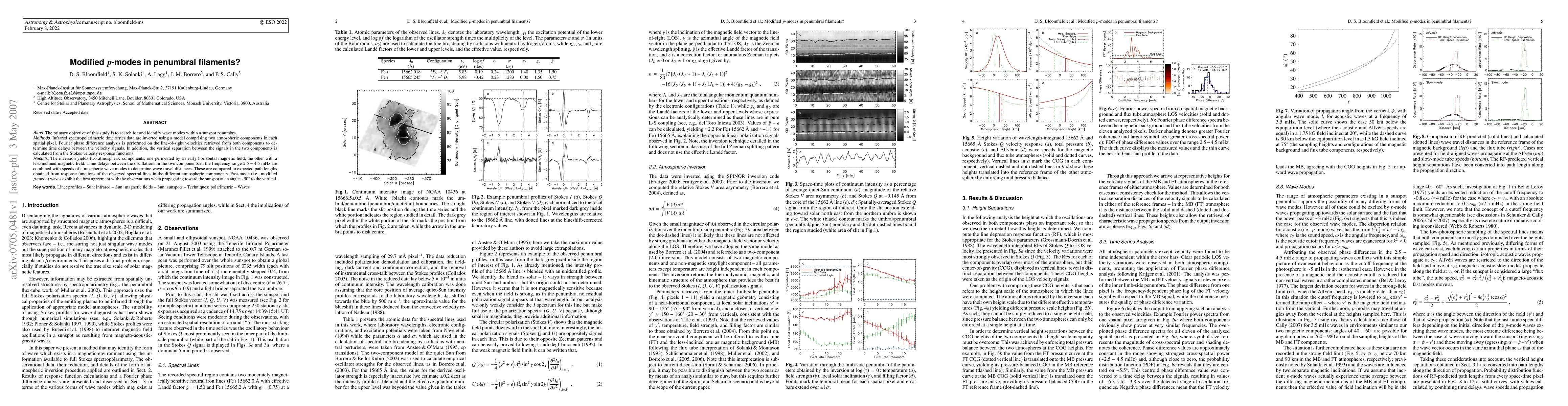 Aims: The primary objective of this study is to search for and identify wave modes within a sunspot penumbra. Methods: Infrared spectropolarimetric time series data are inverted using a model comprising two atmospheric components in each spatial pixel. Fourier phase difference analysis is performed on the line-of-sight velocities retrieved from both components to determine time delays between the velocity signals. In addition, the vertical separation between the signals in the two components is calculated from the Stokes velocity response functions. Results: The inversion yields two atmospheric components, one permeated by a nearly horizontal magnetic field, the other with a less-inclined magnetic field. Time delays between the oscillations in the two components in the frequency range 2.5-4.5 mHz are combined with speeds of atmospheric wave modes to determine wave travel distances. These are compared to expected path lengths obtained from response functions of the observed spectral lines in the different atmospheric components. Fast-mode (i.e., modified p-mode) waves exhibit the best agreement with the observations when propagating toward the sunspot at an angle ~50 degrees to the vertical.