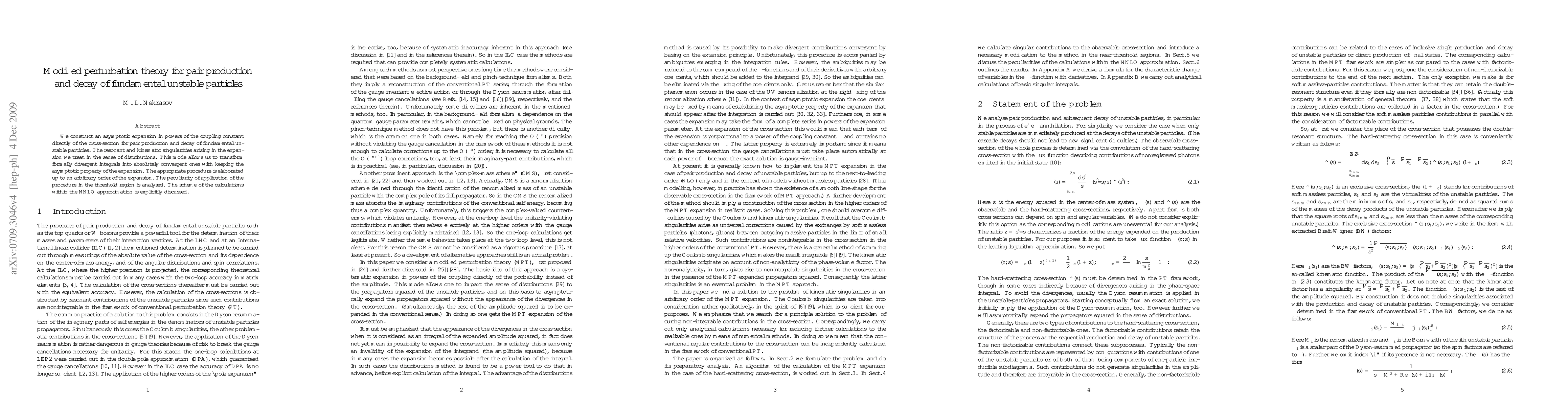 We construct an asymptotic expansion in powers of the coupling constant directly of the cross-section for pair production and decay of fundamental unstable particles. The resonant and kinematic singularities arising in the expansion we treat in the sense of distributions. This mode allows us to transform formally divergent integrals into absolutely convergent ones with keeping the asymptotic property of the expansion. The appropriate procedure is elaborated up to an arbitrary order of the expansion. The peculiarity of application of the procedure in the threshold region is analysed. The scheme of the calculations within the NNLO approximation is explicitly discussed.