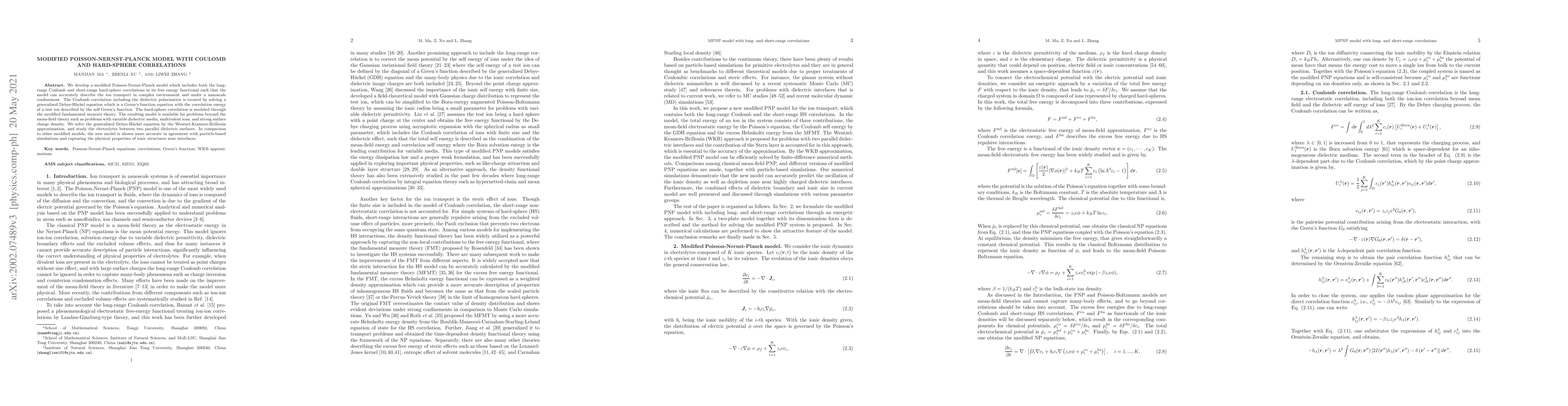 This paper develops a modified Poisson-Nernst-Planck model incorporating both Coulomb and hard-sphere correlations to accurately describe ion transport in complex environments. The model uses a generalized Debye-Hückel equation and fundamental measure theory, showing improved accuracy compared to other models and better agreement with particle-based simulations.