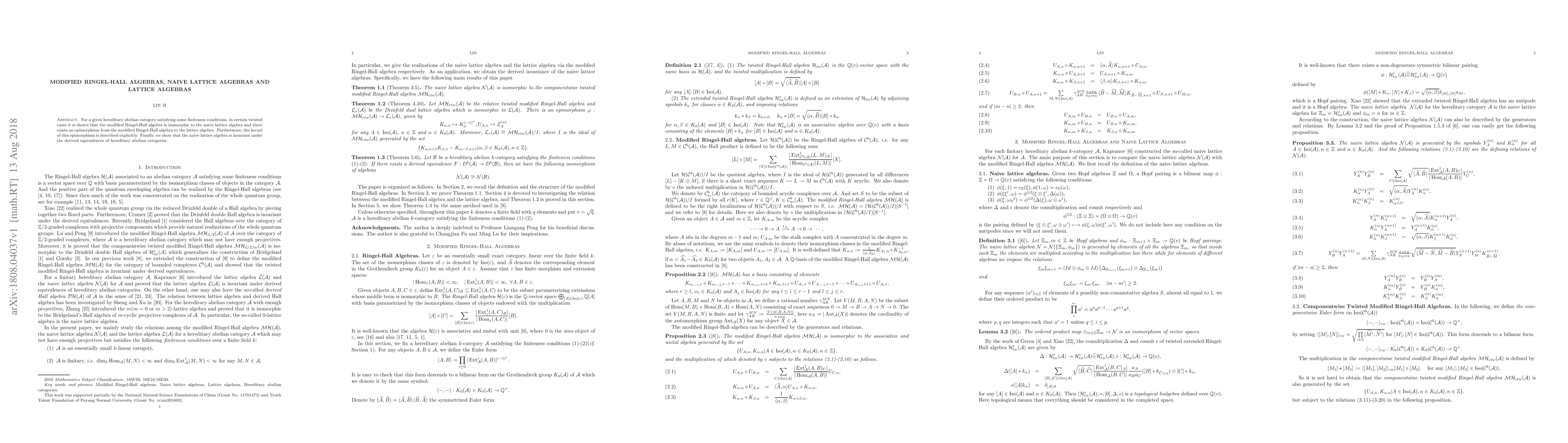 Summary: The paper demonstrates that, under specific twisted conditions, the modified Ringel-Hall algebra is isomorphic to the naive lattice algebra and maps onto the lattice algebra, with an explicitly described kernel. It also establishes the invariance of the naive lattice algebra under derived equivalences in hereditary abelian categories.