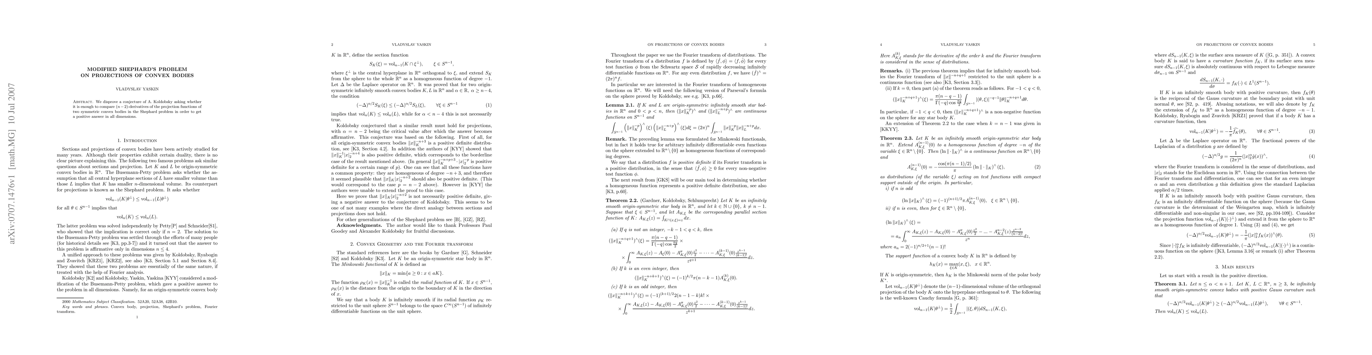 We disprove a conjecture of A. Koldobsky asking whether it is enough to compare $(n-2)$-derivatives of the projection functions of two symmetric convex bodies in the Shephard problem in order to get a positive answer in all dimensions.