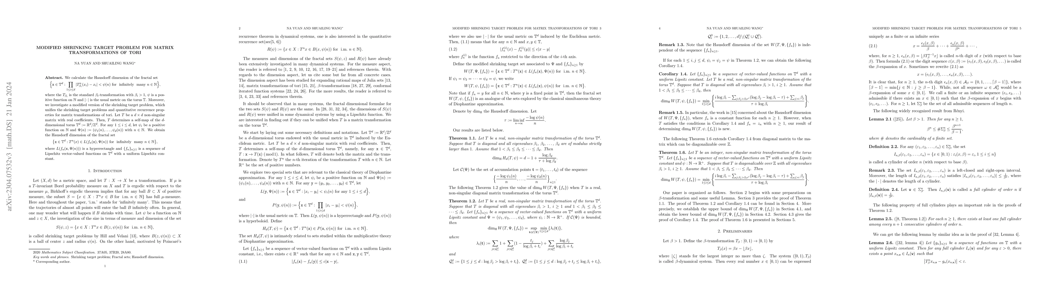We calculate the Hausdorff dimension of the fractal set \begin{equation*} \Big\{\mathtt{x}\in \mathbb{T}^d: \prod_{1\leq i\leq d}|T_{\beta_i}^n(x_i)-x_i| < \psi(n) \text{ for infinitely many } n\in \mathbb{N}\Big\}, \end{equation*} where the $T_{\beta_i}$ is the standard $\beta_i$-transformation with $\beta_i>1$, $\psi$ is a positive function on $\mathbb{N}$ and $|\cdot|$ is the usual metric on the torus $\mathbb{T}$. Moreover, we investigate a modified version of the shrinking target problem, which unifies the shrinking target problems and quantitative recurrence properties for matrix transformations of tori. Let $T$ be a $d\times d$ non-singular matrix with real coefficients. Then, $T$ determines a self-map of the $d$-dimensional torus $\mathbb{T}^d:=\mathbb{R}^d / \mathbb{Z}^d$. For any $1\leq i \leq d$, let $\psi_i$ be a positive function on $\mathbb{N}$ and $\Psi(n):=(\psi_1(n),\dots, \psi_d(n))$ with $n\in \mathbb{N}$. We obtain the Hausdorff dimension of the fractal set \begin{equation*} \big\{\mathtt{x}\in \mathbb{T}^d: T^n(x)\in L(f_n(\mathtt{x}), \Psi(n)) \text{ for infinitely many } n\in \mathbb{N}\big\}, \end{equation*} where $L(f_n(\mathtt{x}, \Psi(n)))$ is a hyperrectangle and $\{f_n\}_{n\geq 1}$ is a sequence of Lipschitz vector-valued functions on $\mathbb{T}^d$ with a uniform Lipschitz constant.