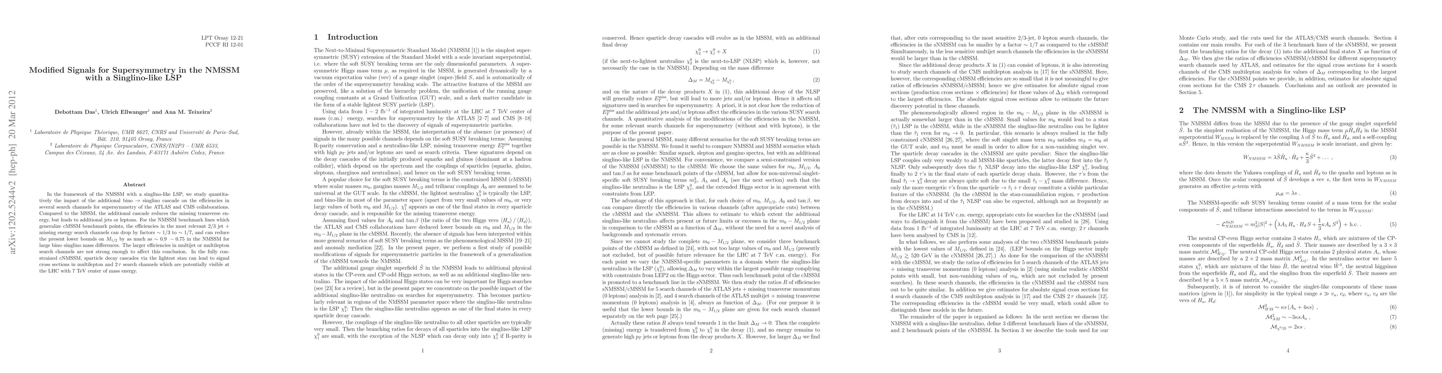 A study on supersymmetry in the NMSSM framework reveals that an additional bino-singlino cascade can reduce search efficiencies by a factor of 1/3 to 1/7, potentially lowering limits on M_{1/2} by 0.9-0.75.