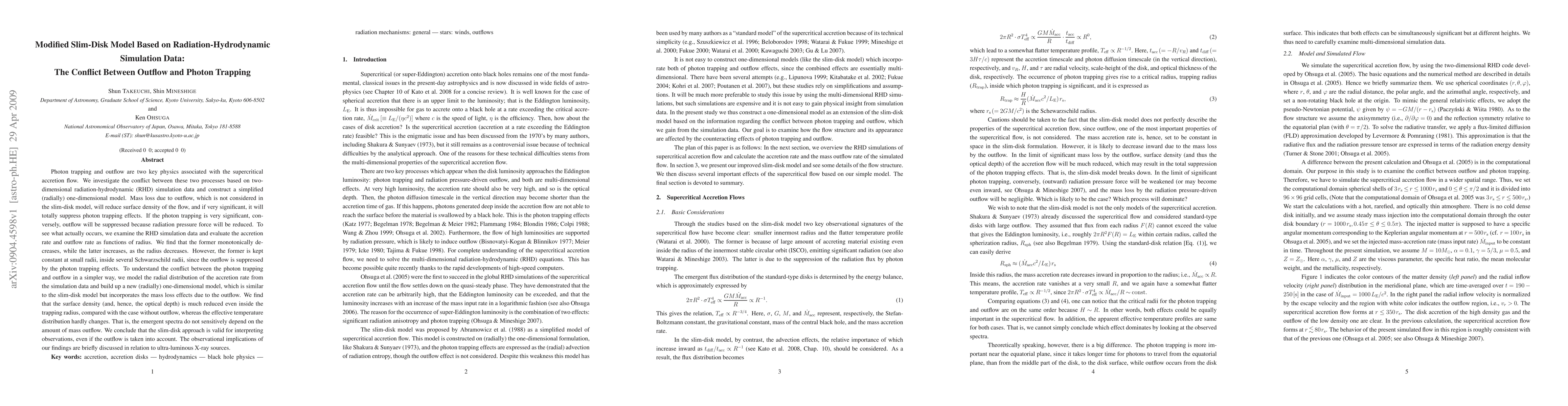 Photon trapping and outflow are two key physics associated with the supercritical accretion flow. We investigate the conflict between these two processes based on two-dimensional radiation-hydrodynamic (RHD) simulation data and construct a simplified (radially) one-dimensional model. Mass loss due to outflow, which is not considered in the slim-disk model, will reduce surface density of the flow, and if very significant, it will totally suppress photon trapping effects. If the photon trapping is very significant, conversely, outflow will be suppressed because radiation pressure force will be reduced. To see what actually occurs, we examine the RHD simulation data and evaluate the accretion rate and outflow rate as functions of radius. We find that the former monotonically decreases, while the latter increases, as the radius decreases. However, the former is kept constant at small radii, inside several Schwarzschild radii, since the outflow is suppressed by the photon trapping effects. To understand the conflict between the photon trapping and outflow in a simpler way, we model the radial distribution of the accretion rate from the simulation data and build up a new (radially) one-dimensional model, which is similar to the slim-disk model but incorporates the mass loss effects due to the outflow. We find that the surface density (and, hence, the optical depth) is much reduced even inside the trapping radius, compared with the case without outflow, whereas the effective temperature distribution hardly changes. That is, the emergent spectra do not sensitively depend on the amount of mass outflow. We conclude that the slim-disk approach is valid for interpreting observations, even if the outflow is taken into account.