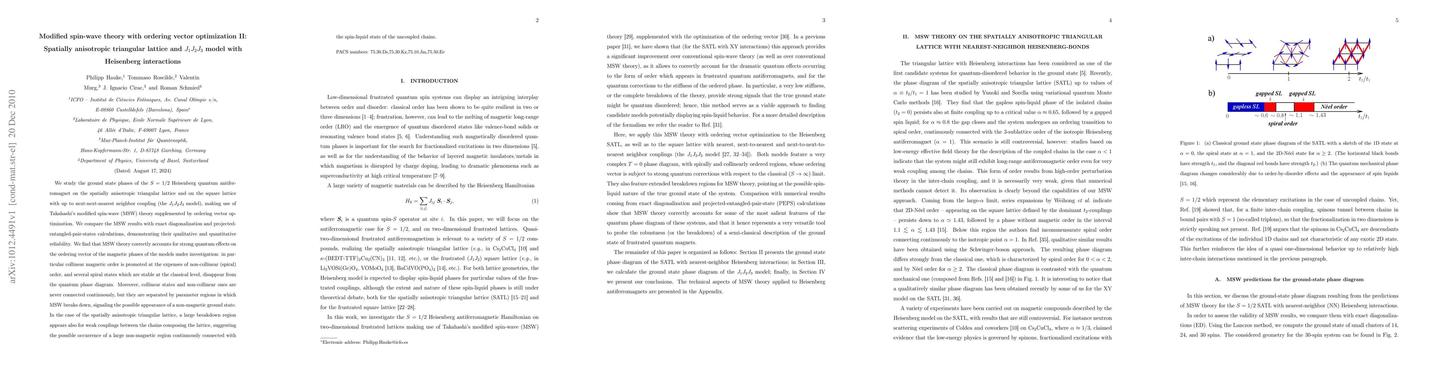 We study the ground state phases of the $S=1/2$ Heisenberg quantum antiferromagnet on the spatially anisotropic triangular lattice and on the square lattice with up to next-next-nearest neighbor coupling (the $J_1J_2J_3$ model), making use of Takahashi's modified spin-wave (MSW) theory supplemented by ordering vector optimization. We compare the MSW results with exact diagonalization and projected-entangled-pair-states calculations, demonstrating their qualitative and quantitative reliability. We find that MSW theory correctly accounts for strong quantum effects on the ordering vector of the magnetic phases of the models under investigation: in particular collinear magnetic order is promoted at the expenses of non-collinear (spiral) order, and several spiral states which are stable at the classical level, disappear from the quantum phase diagram. Moreover, collinear states and non-collinear ones are never connected continuously, but they are separated by parameter regions in which MSW breaks down, signaling the possible appearance of a non-magnetic ground state. In the case of the spatially anisotropic triangular lattice, a large breakdown region appears also for weak couplings between the chains composing the lattice, suggesting the possible occurrence of a large non-magnetic region continuously connected with the spin-liquid state of the uncoupled chains.