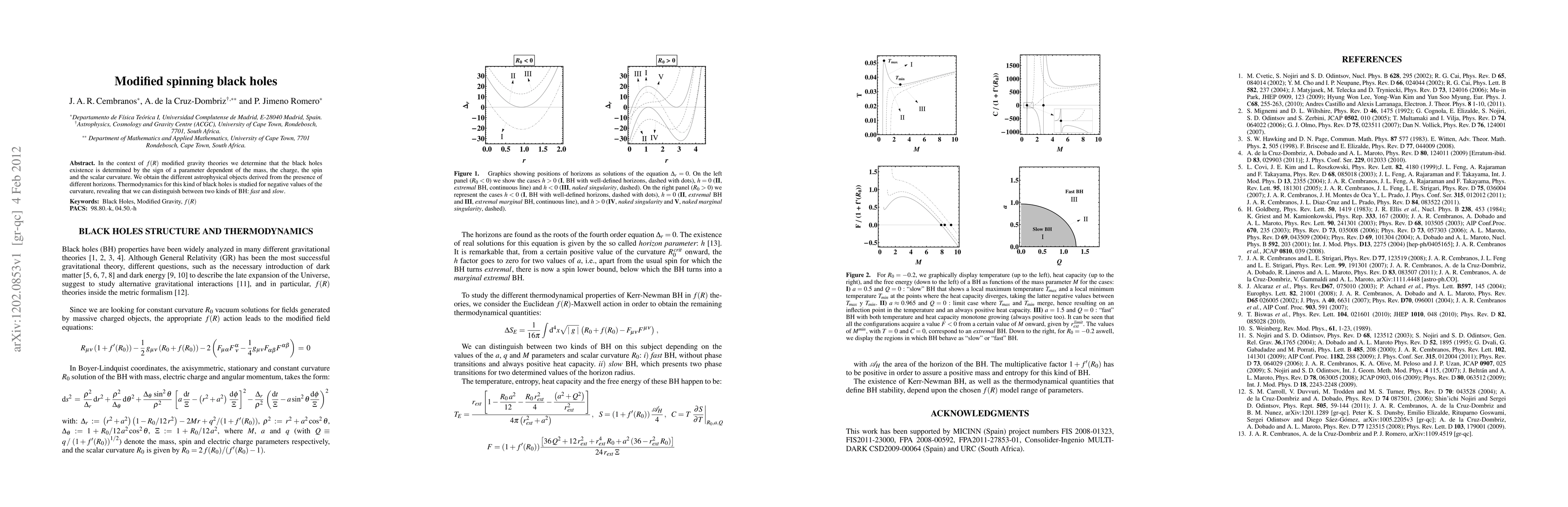 Summary: This paper explores modified spinning black holes in f(R) gravity, showing that their existence and properties depend on mass, charge, spin, and scalar curvature. It distinguishes between fast and slow black holes based on thermodynamic analysis for negative curvature values.