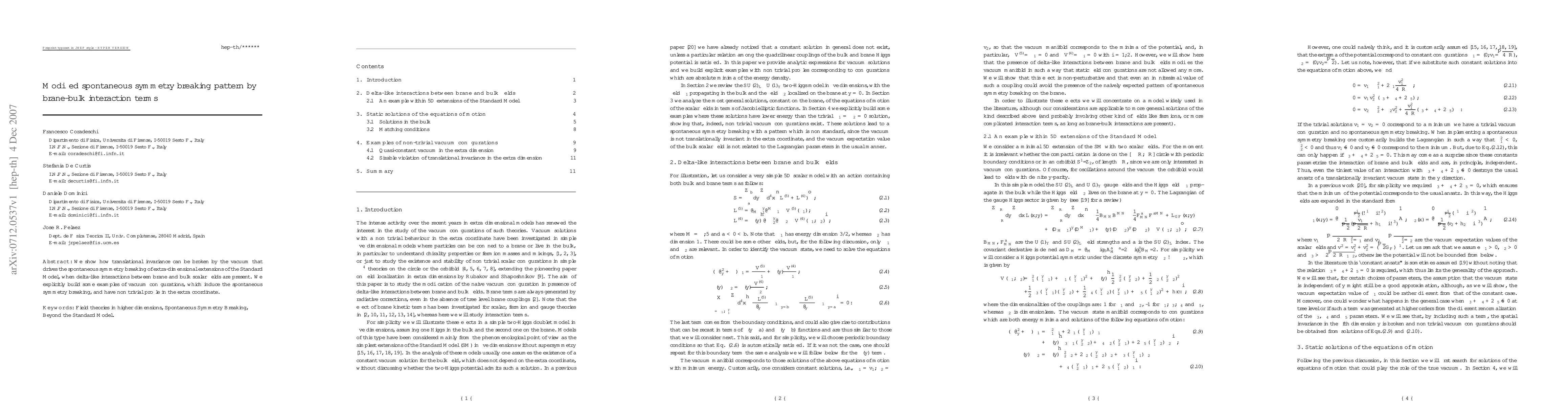This paper explores how brane-bulk interactions can lead to modified spontaneous symmetry breaking in extra-dimensional models, demonstrating that delta-like interactions between brane and bulk scalar fields can break translational invariance in the vacuum state. Specific vacuum configurations are constructed to illustrate this phenomenon with non-trivial profiles in extra dimensions.