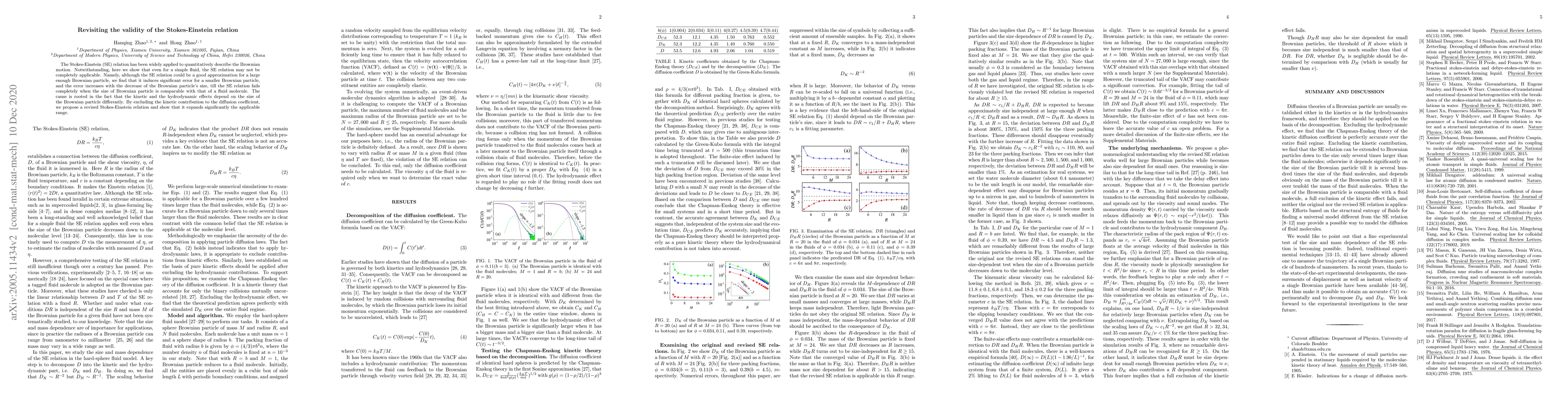 The Stokes-Einstein (SE) relation has been widely applied to quantitatively describe the Brownian motion. Notwithstanding, here we show that even for a simple fluid, the SE relation may not be completely applicable. Namely, although the SE relation could be a good approximation for a large enough Brownian particle, we find that it induces significant error for a smaller Brownian particle, and the error increases with the decrease of the Brownian particle's size, till the SE relation fails completely when the size of Brownian particle is comparable with that of a fluid molecule. The cause is rooted in the fact that the kinetic and the hydrodynamic effects depend on the size of the Brownian particle differently. By excluding the kinetic contribution to the diffusion coefficient, we propose a revised Stokes-Einstein relation and show that it expands significantly the applicable range.