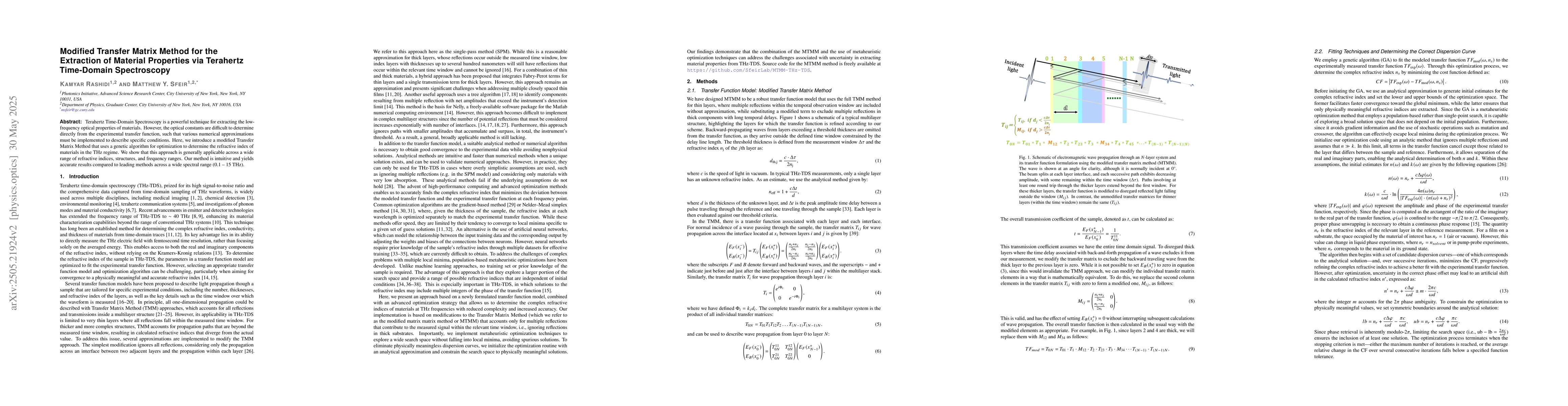 The research introduces a modified Transfer Matrix Method that employs a genetic algorithm for optimization to ascertain the refractive index of materials in the THz regime.