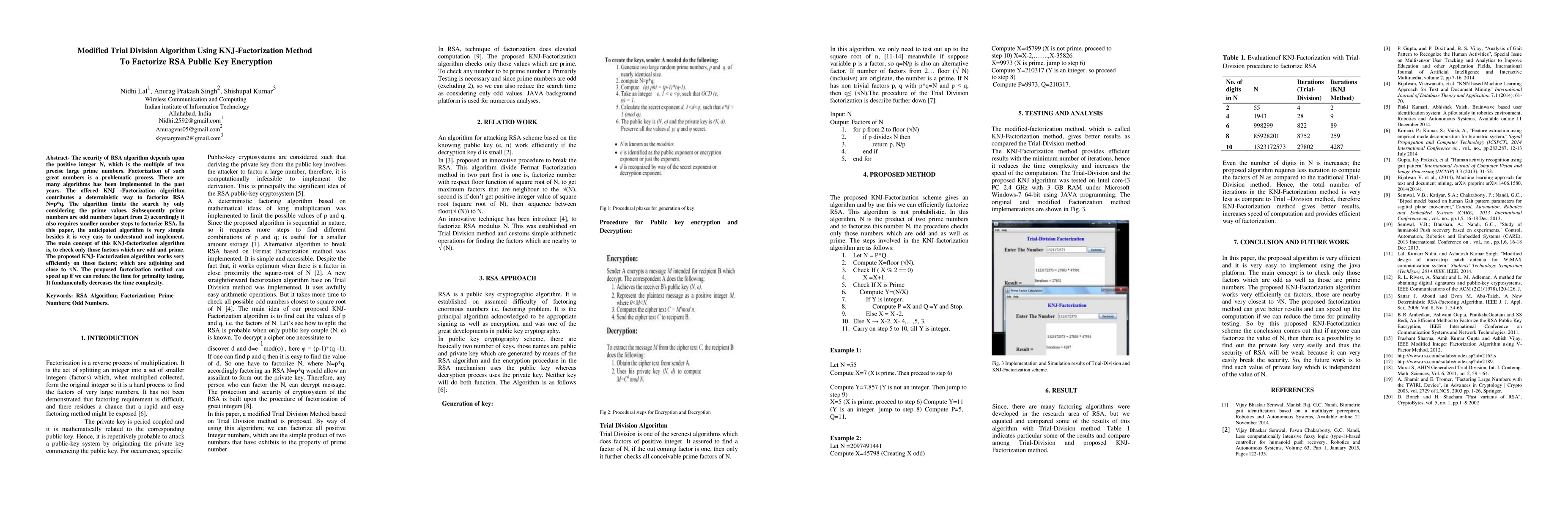The KNJ-Factorization method presents a deterministic trial division algorithm to factorize RSA encryption keys by focusing on odd prime numbers, thereby reducing computational steps and improving efficiency. This method significantly lowers time complexity by limiting the search to prime factors close to N.