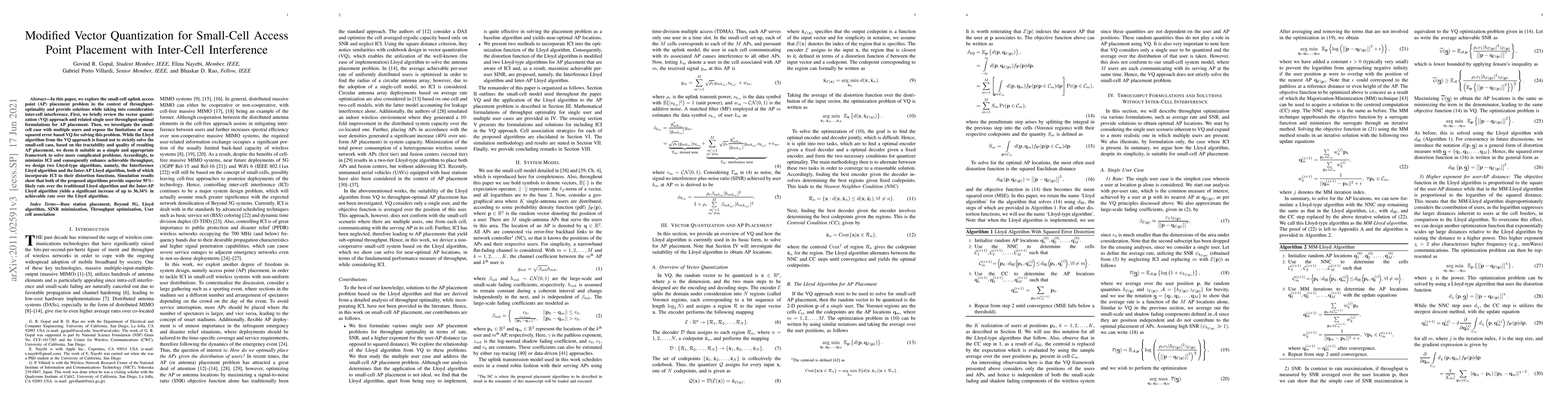 This paper proposes modified vector quantization algorithms for small-cell access point placement to optimize throughput while minimizing inter-cell interference. The developed Interference Lloyd and Inter-AP Lloyd algorithms outperform traditional methods, with the latter achieving up to a 36.34% increase in achievable rate.