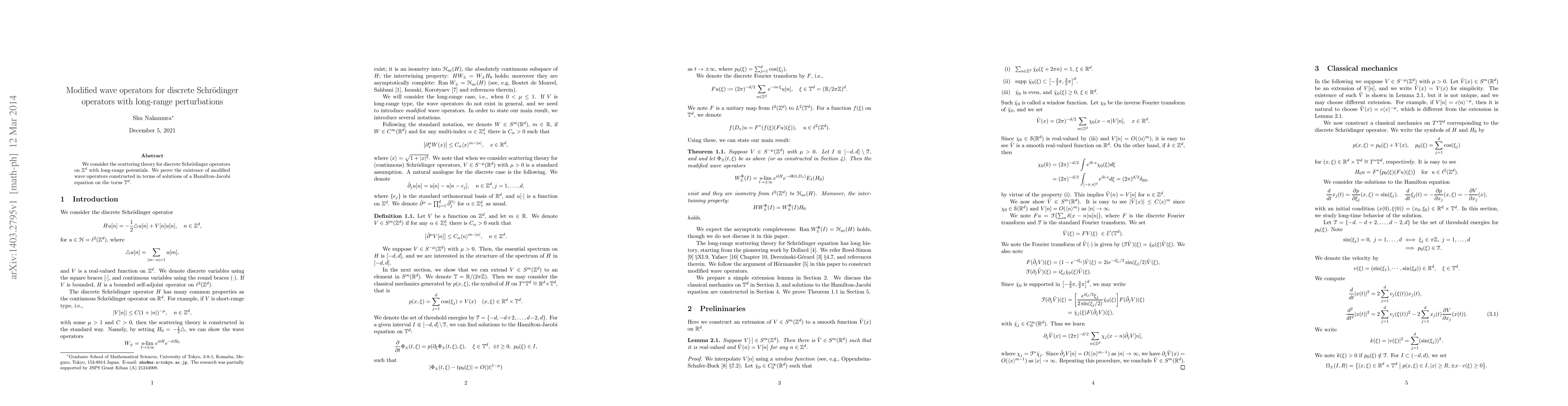 Summary: This paper establishes the existence of modified wave operators for discrete Schrödinger operators on $Z^d$ with long-range perturbations, utilizing solutions from a Hamilton-Jacobi equation on the torus $T^d$ to construct these operators within the scattering theory framework.