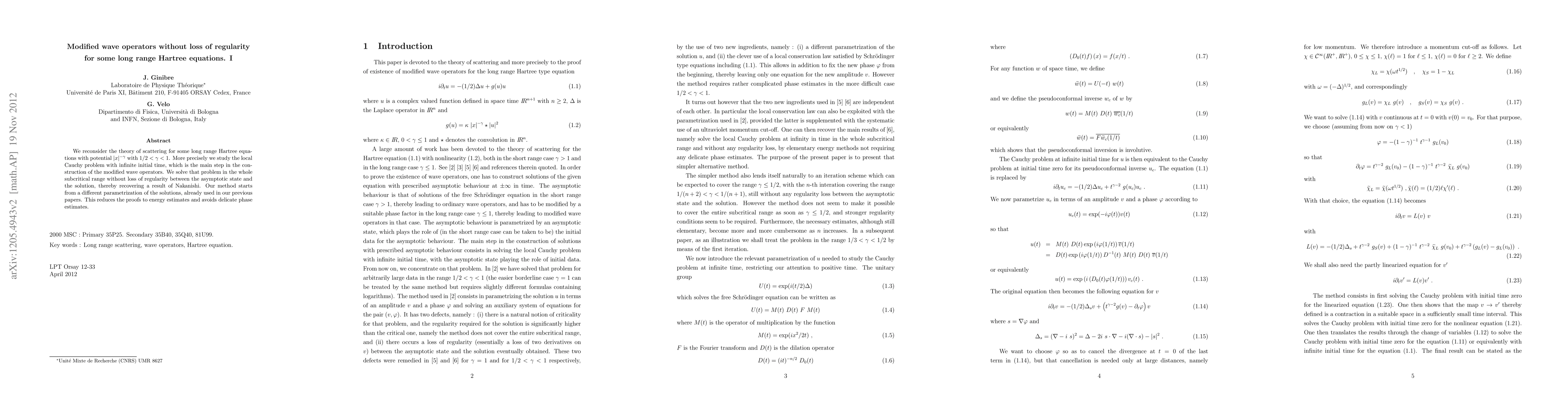 We reconsider the theory of scattering for some long range Hartree equations with potential |x|^-gamma with 1/2 < gamma < 1. More precisely we study the local Cauchy problem with infinite initial time, which is the main step in the construction of the modified wave operators. We solve that problem in the whole subcritical range without loss of regularity between the asymptotic state and the solution, thereby recovering a result of Nakanishi. Our method starts from a different parametrization of the solutions, already used in our previous papers. This reduces the proofs to energy estimates and avoids delicate phase estimates.