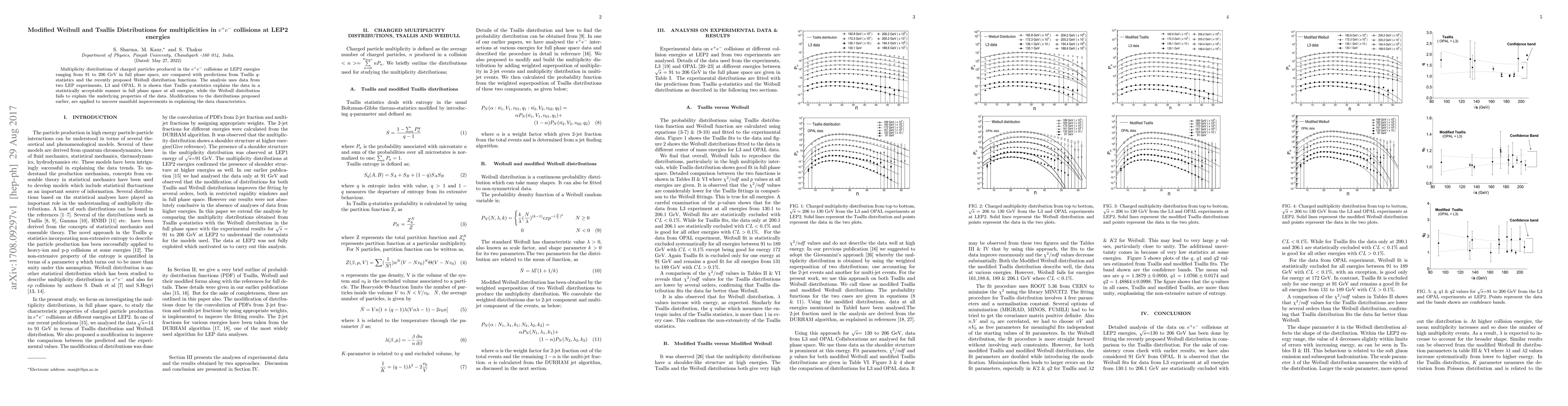 The research proposes modified Weibull and Tsallis distributions for multiplicities in $e^{+}e^{-}$ collisions at LEP2 energies.
