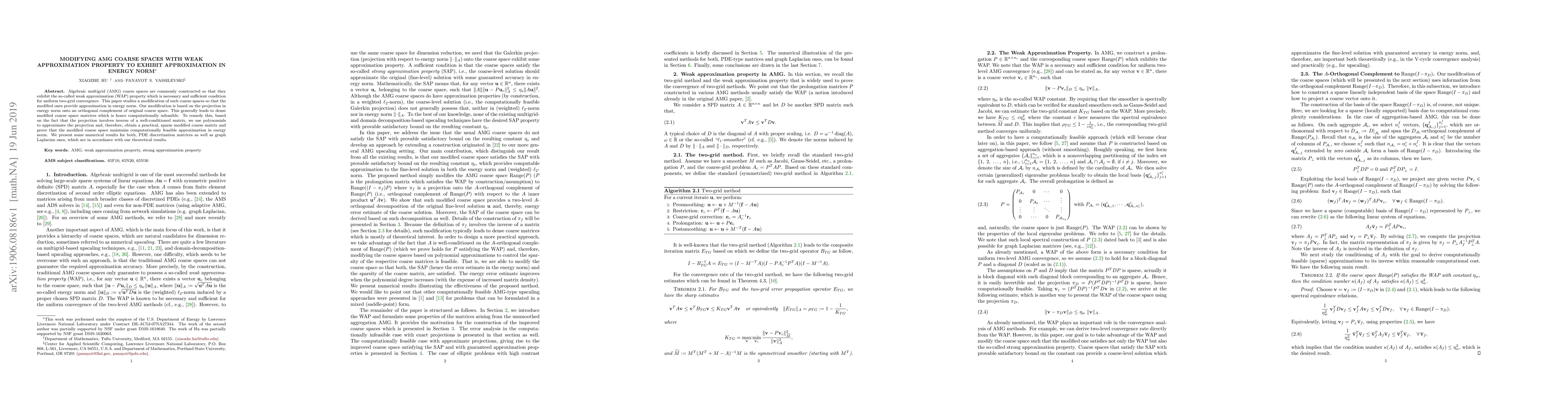 Algebraic multigrid (AMG) coarse spaces are commonly constructed so that they exhibit the so-called weak approximation (WAP) property which is necessary and sufficient condition for uniform two-grid convergence. This paper studies a modification of such coarse spaces so that the modified ones provide approximation in energy norm. Our modification is based on the projection in energy norm onto an orthogonal complement of original coarse space. This generally leads to dense modified coarse space matrices which is hence computationally infeasible. To remedy this, based on the fact that the projection involves inverse of a well-conditioned matrix, we use polynomials to approximate the projection and, therefore, obtain a practical, sparse modified coarse matrix and prove that the modified coarse space maintains computationally feasible approximation in energy norm. We present some numerical results for both, PDE discretization matrices as well as graph Laplacian ones, which are in accordance with our theoretical results.