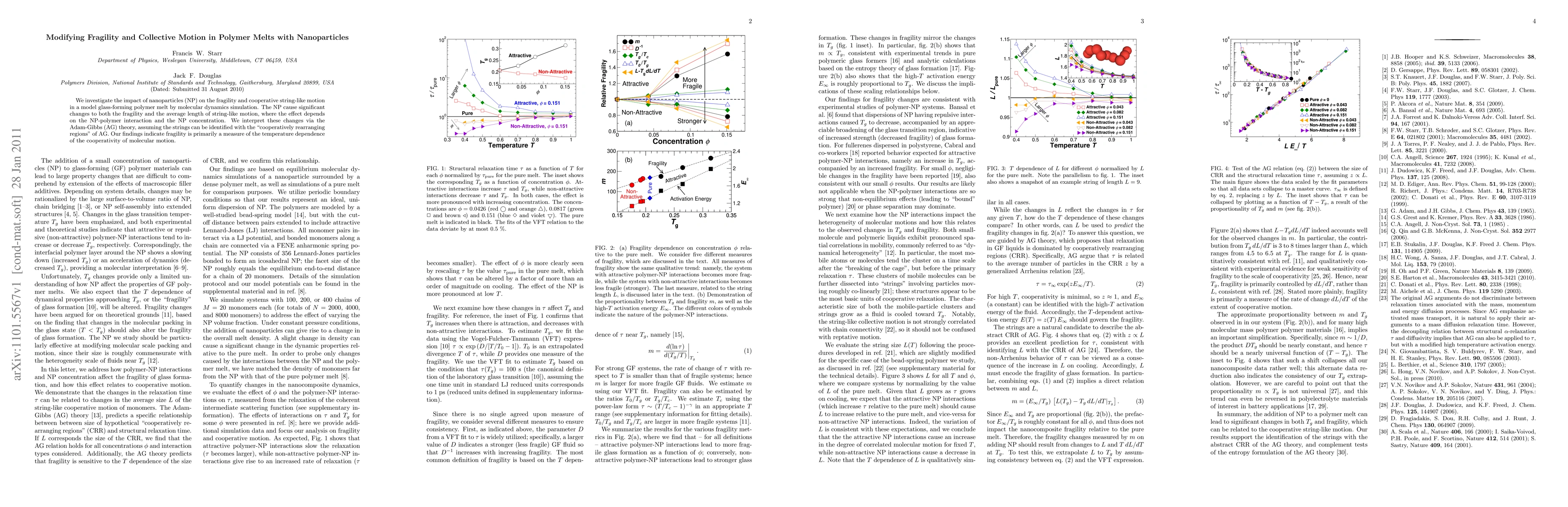 This study uses molecular dynamics simulations to explore how nanoparticles alter the fragility and collective motion in polymer melts, revealing that NPs significantly modify both properties, with effects varying based on interaction strength and concentration. The findings suggest that fragility reflects the temperature dependence of cooperative molecular motion.