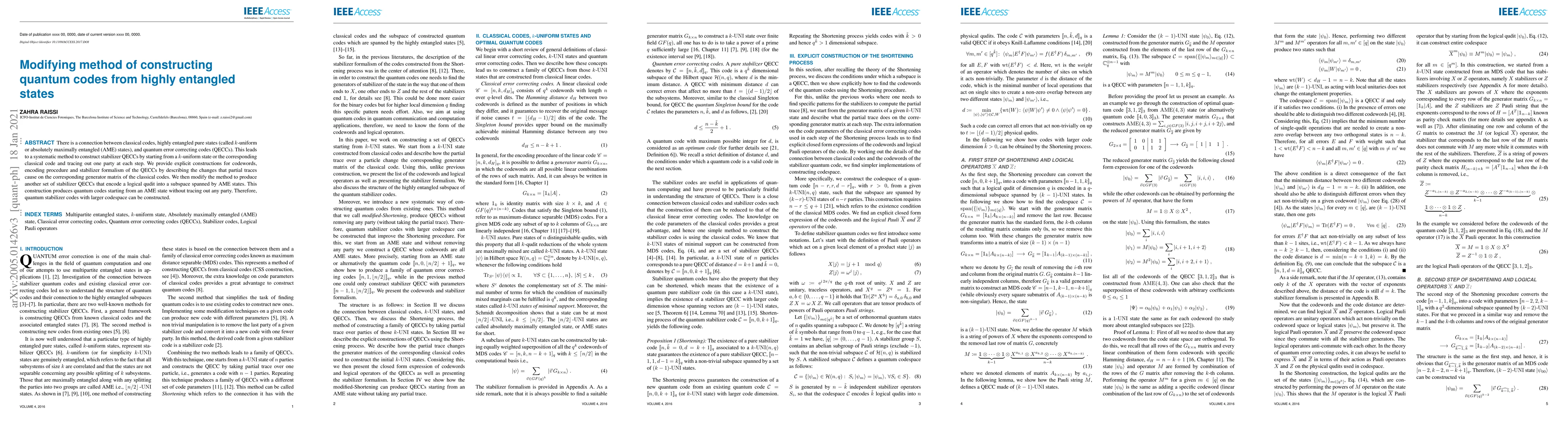 This paper presents a systematic method to construct quantum error correcting codes (QECCs) from k-uniform or absolutely maximally entangled states by tracing out one party iteratively. It modifies the method to create a new set of stabilizer QECCs that encode a logical qudit directly from an AME state without any tracing, resulting in quantum codes with larger codespaces.