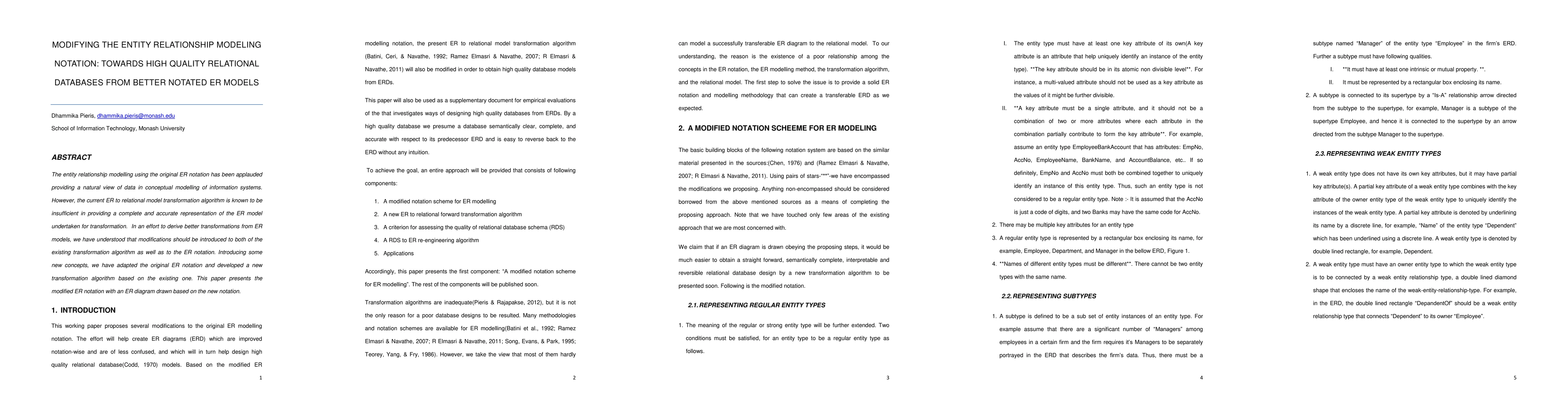 The entity relationship modelling using the original ER notation has been applauded providing a natural view of data in conceptual modelling of information systems. However, the current ER to relational model transformation algorithm is known to be insufficient in providing a complete and accurate representation of the ER model undertaken for transformation. In an effort to derive better transformations from ER models, we have understood that modifications should be introduced to both of the existing transformation algorithm as well as to the ER notation. Introducing some new concepts, we have adapted the original ER notation and developed a new transformation algorithm based on the existing one. This paper presents the modified ER notation with an ER diagram drawn based on the new notation.
