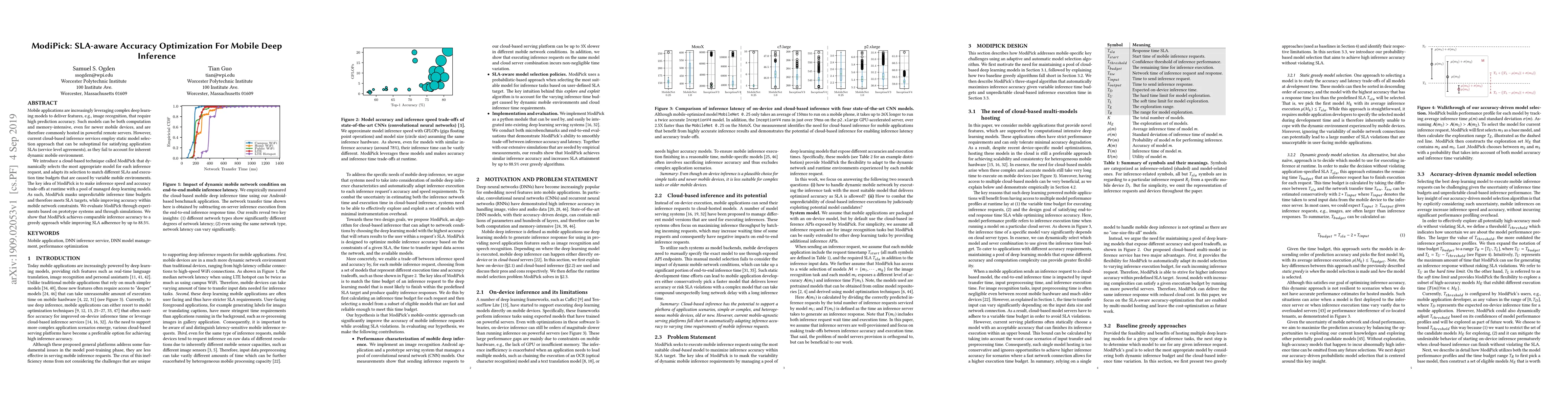 ModiPick is a cloud-based technique that dynamically selects the most appropriate deep learning model for mobile inference requests, optimizing for both accuracy and adherence to service level agreements (SLAs) by managing trade-offs between inference speed and accuracy. Experimental results show it improves SLA adherence by up to 88.5% compared to static model selection approaches.