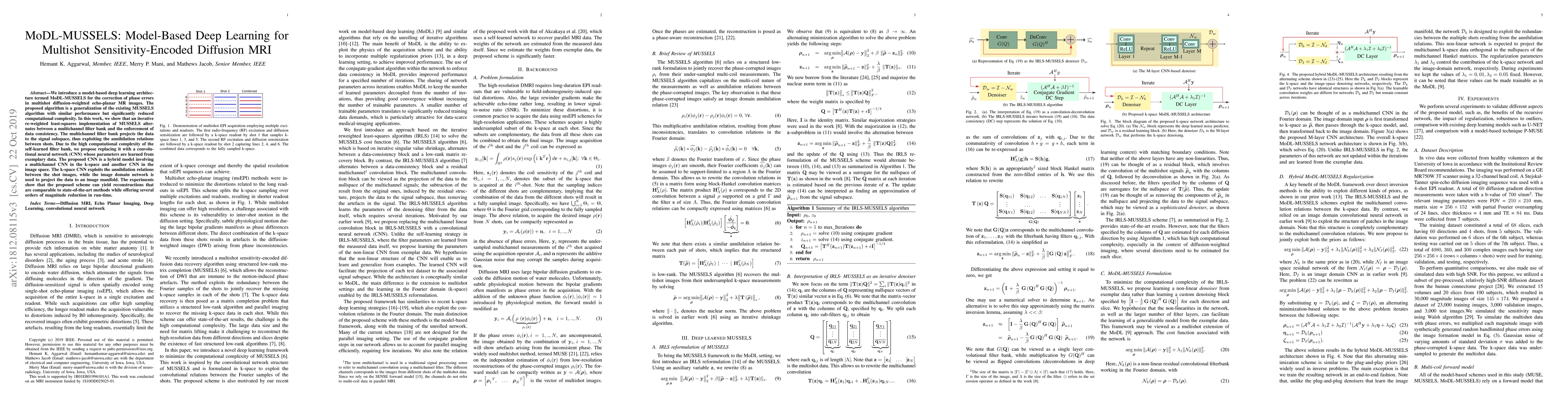 This research introduces a novel deep learning architecture called MoDL-MUSSELS for correcting phase errors in multishot diffusion-weighted MRI images. The proposed method combines an iterative re-weighted least-squares approach with a convolutional neural network to achieve high-quality reconstructions with significantly reduced computational complexity compared to existing methods.