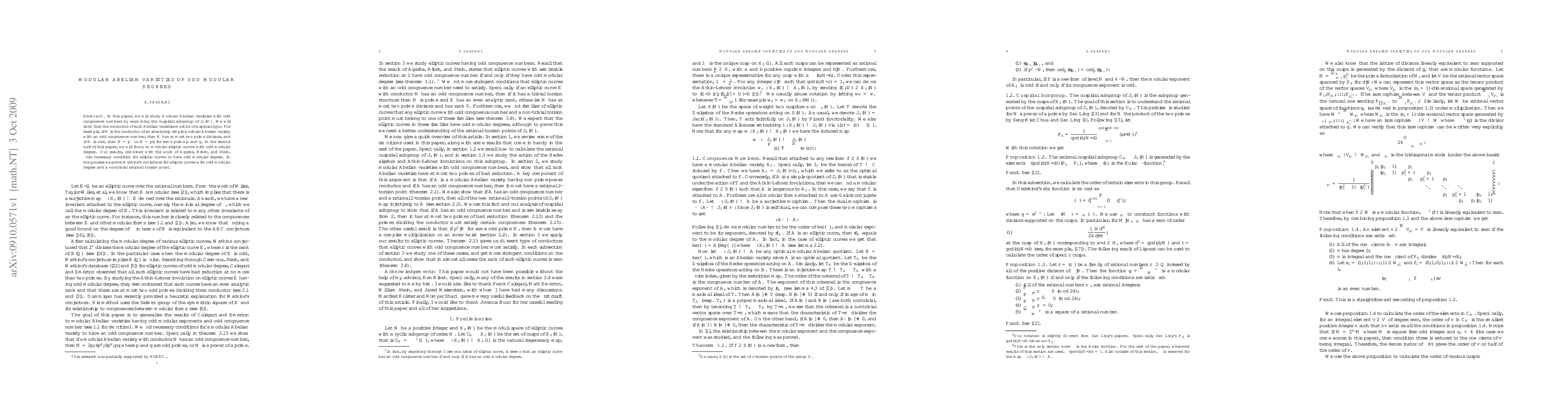 This paper investigates modular Abelian varieties with odd congruence numbers, proving that their conductors must have at most two prime divisors, specifically $N=p^\alpha$ or $N=pq$. It also establishes necessary conditions for elliptic curves with odd modular degree and confirms Watkins's conjecture for such curves with nontrivial rational torsion points.