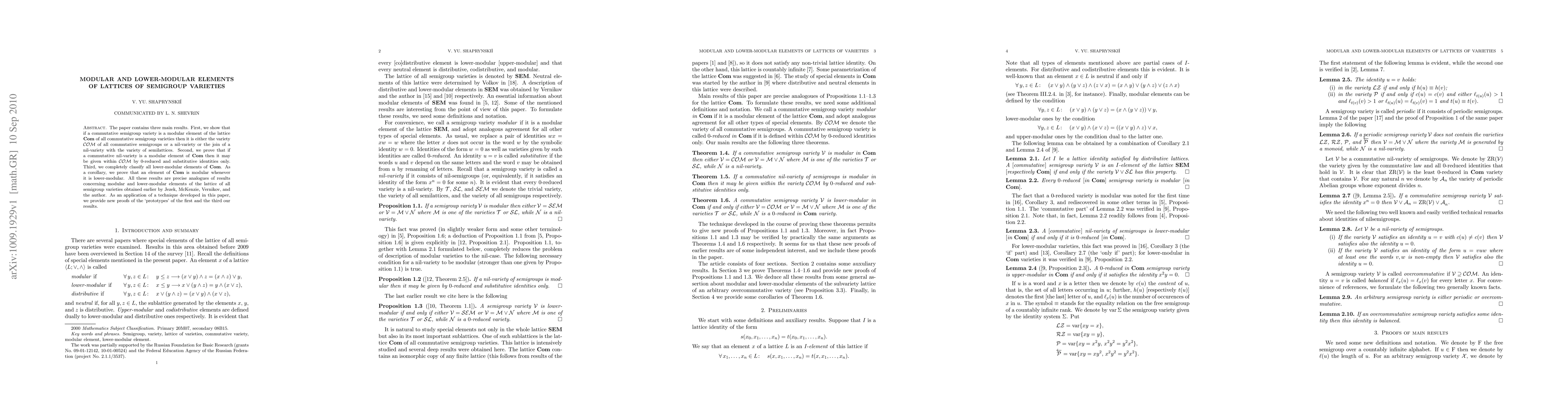 This paper investigates modular and lower-modular elements within the lattice of commutative semigroup varieties, showing that modular elements are either the variety of all commutative semigroups, a nil-variety, or a join of these. It also classifies lower-modular elements and proves that any lower-modular element in this context is modular.